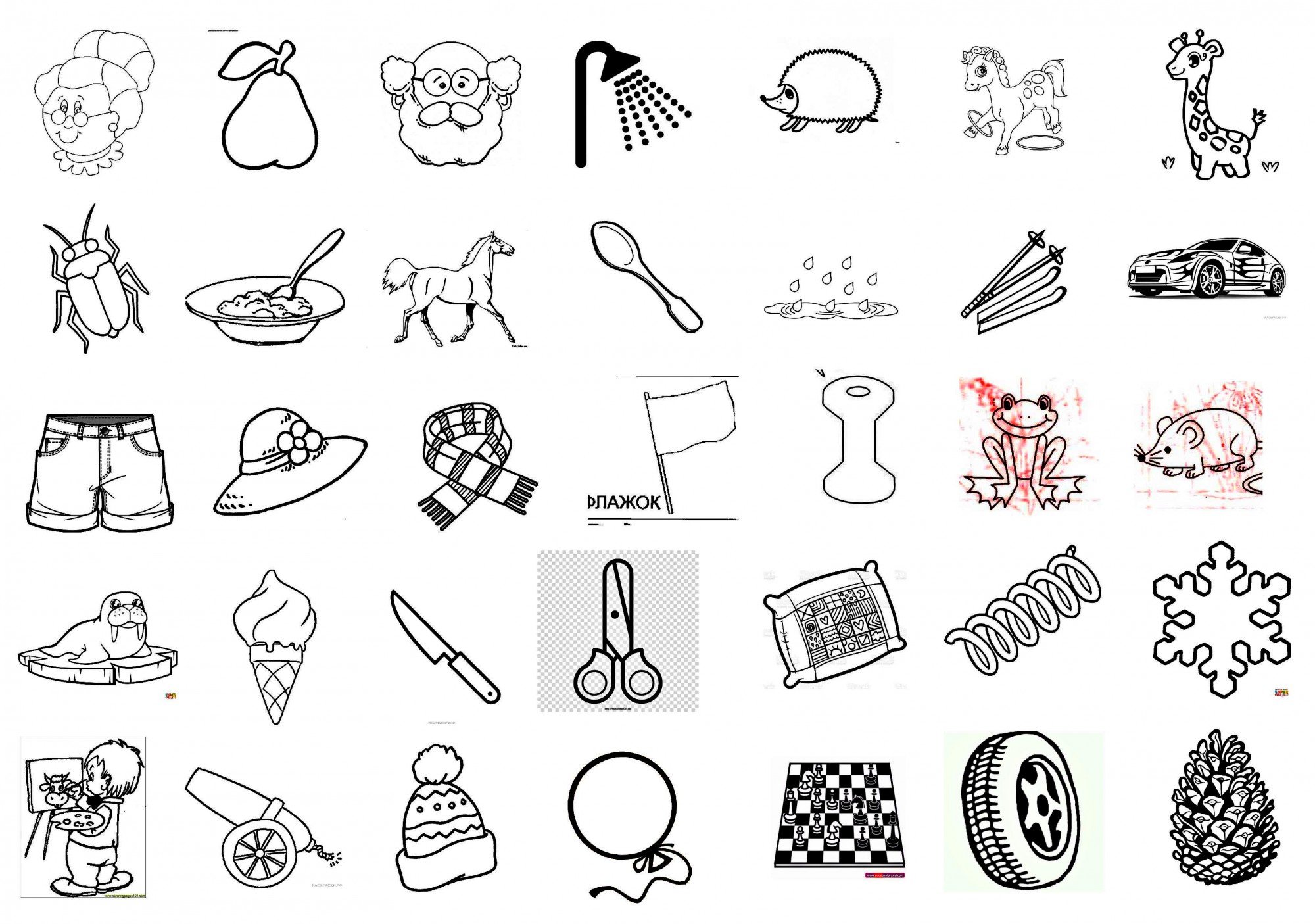 Несколько раскрасок на одном листе