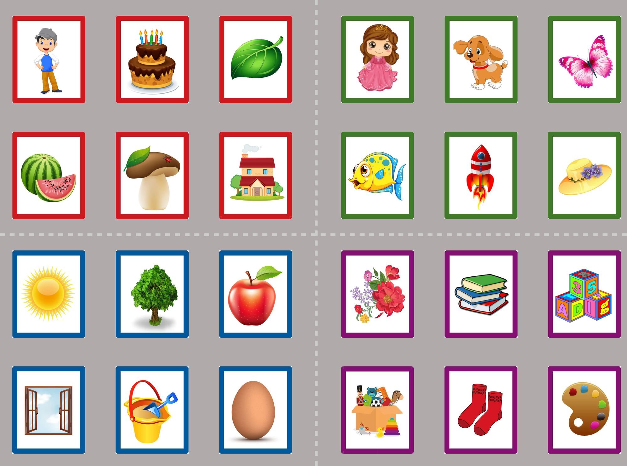Карточки разных предметов