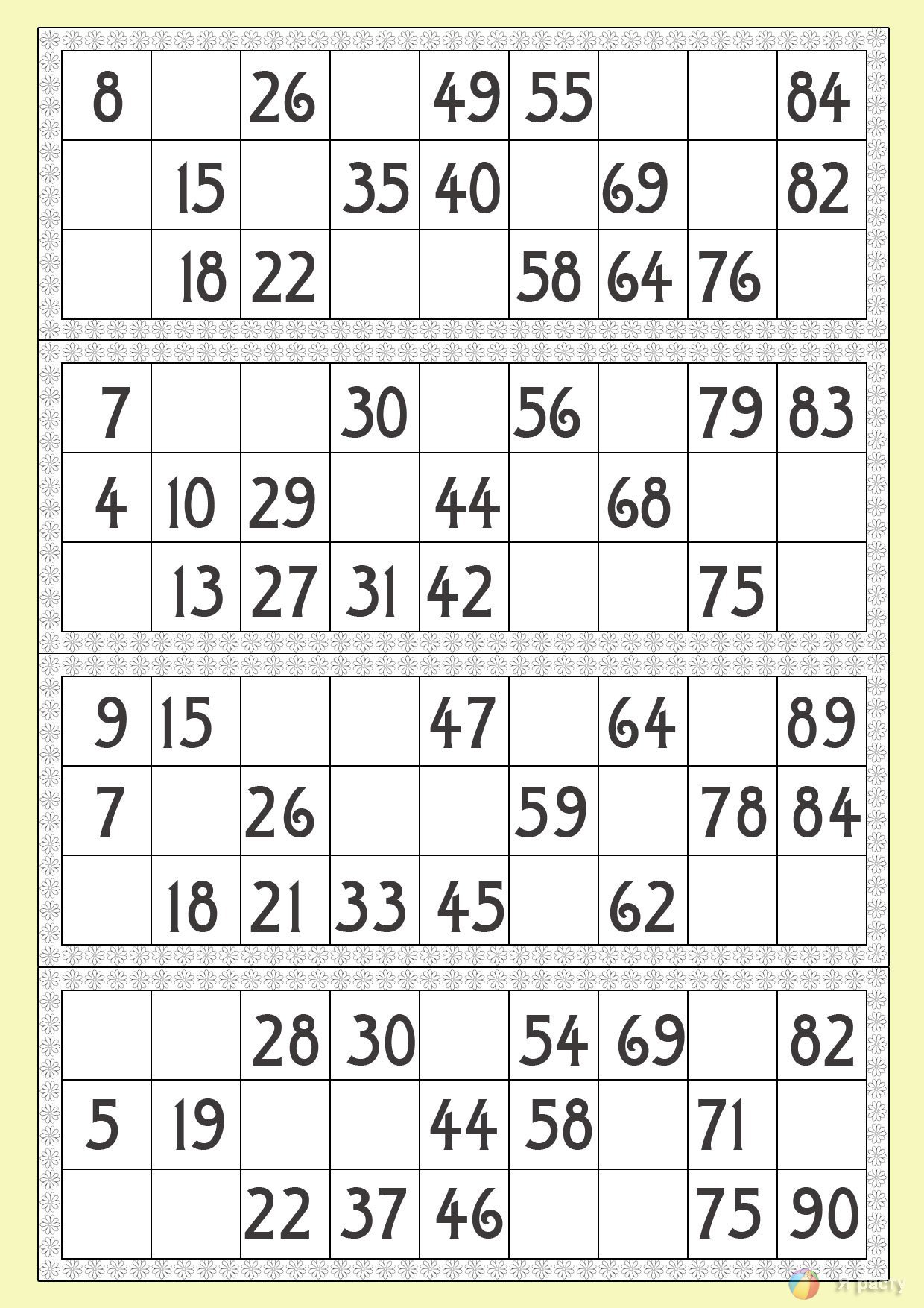 Карточки для игры в Бинго