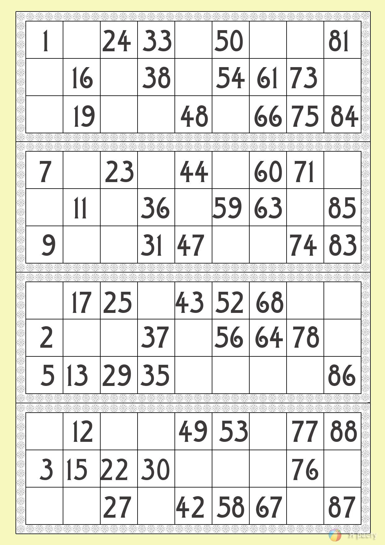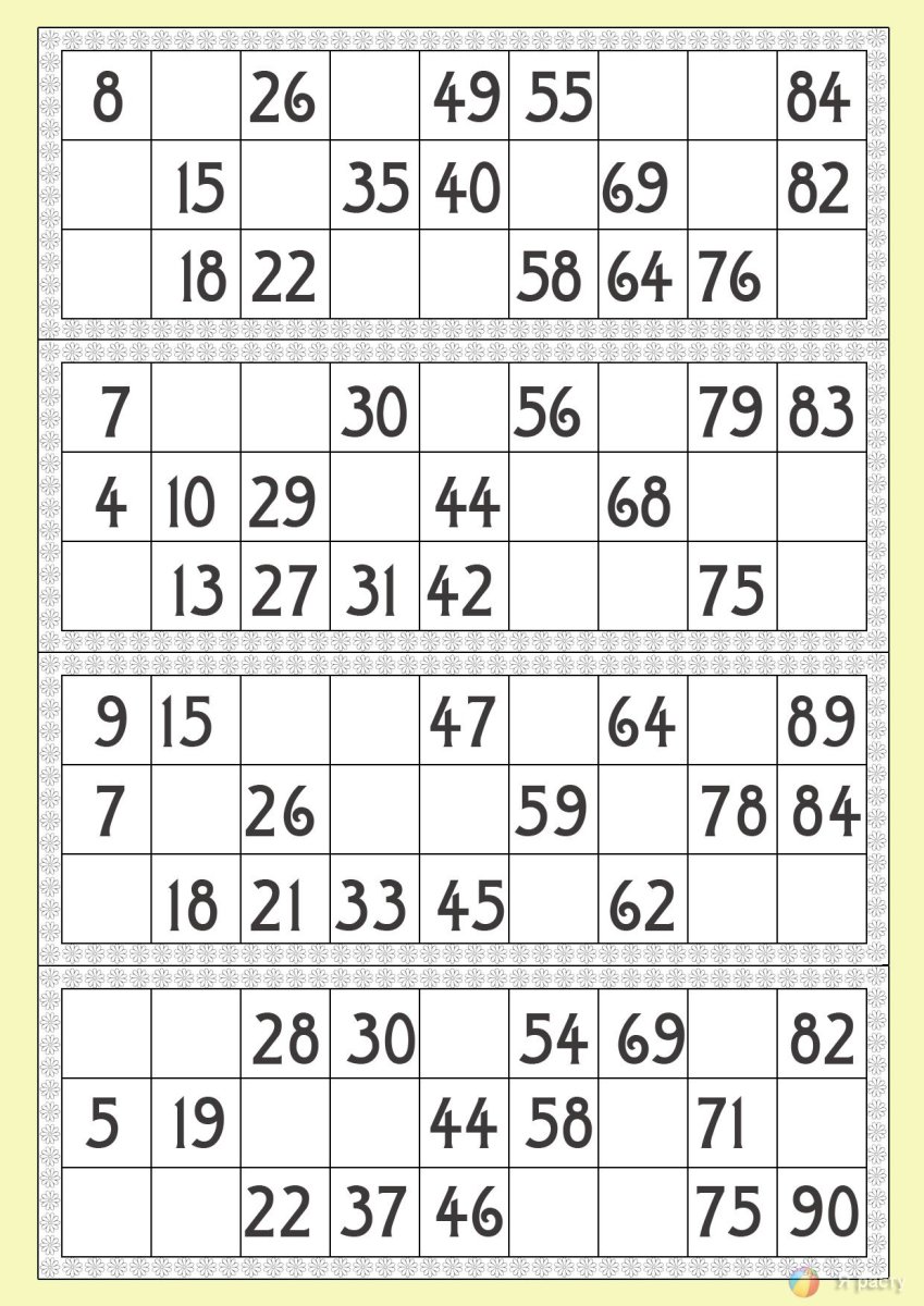 Карточки для лото с цифрами