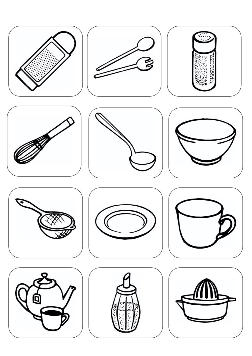 Кухонная посуда раскраска для детей