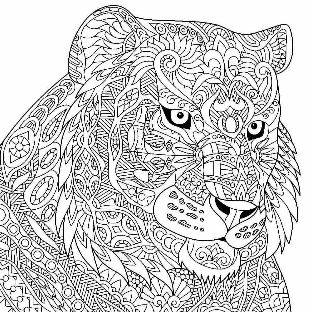 Раскраски антистресс для взрослых тигр
