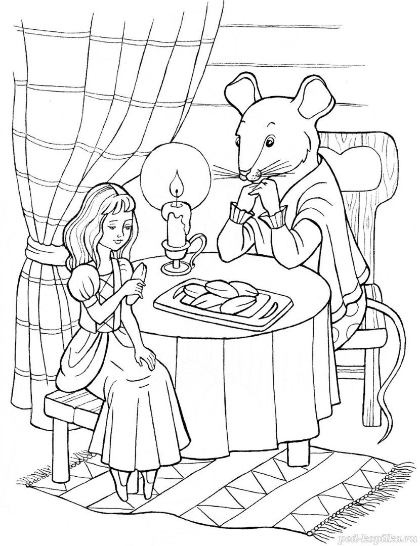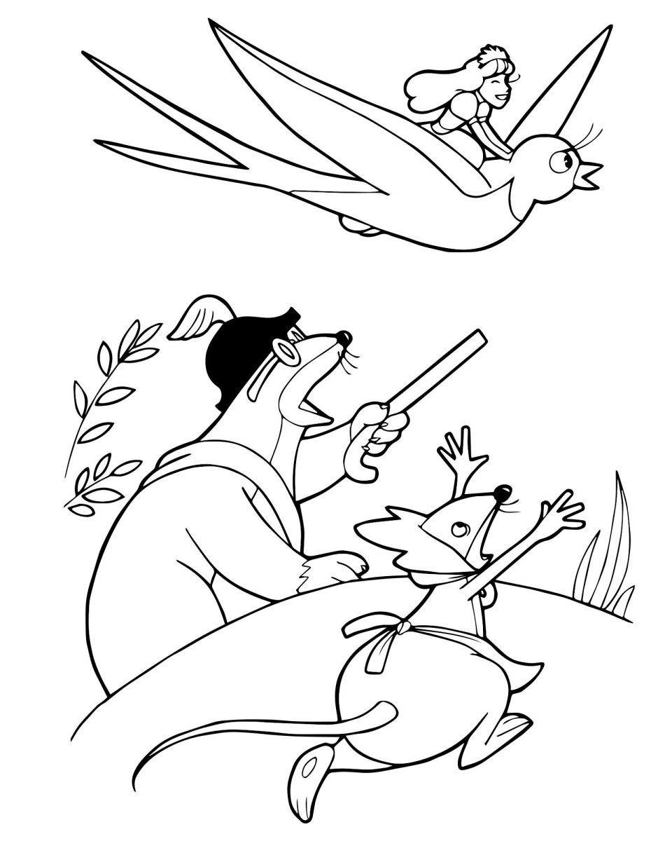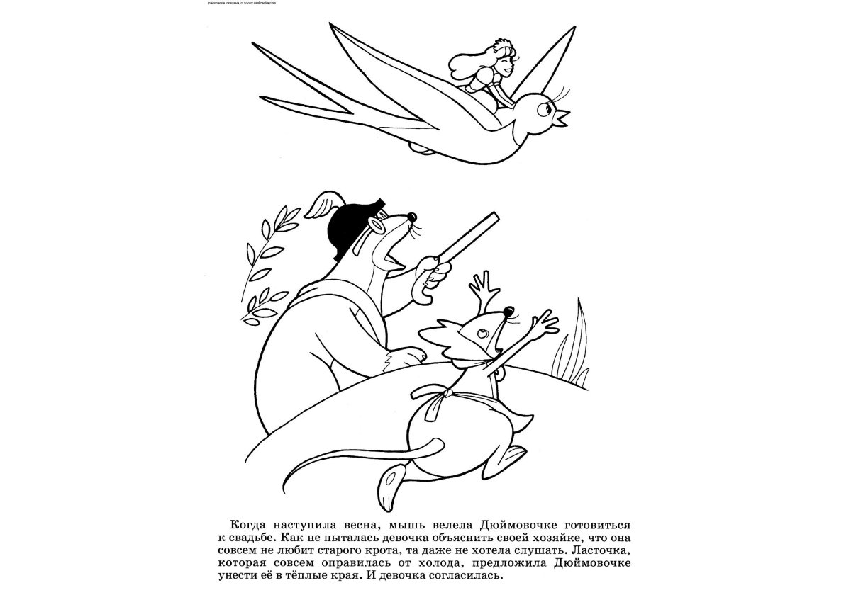 Раскраска к сказке Дюймовочка Ганс христиан Андерсен