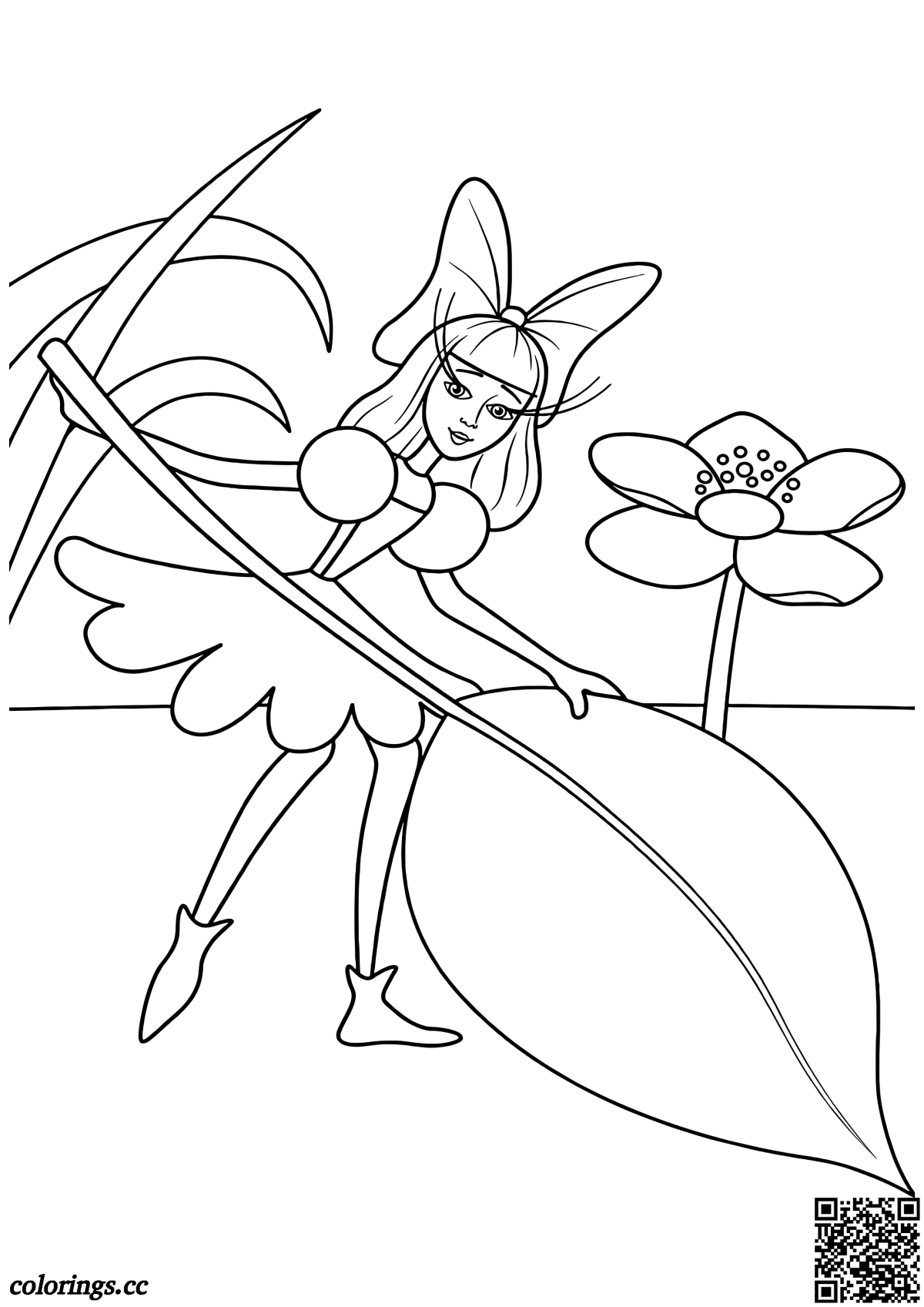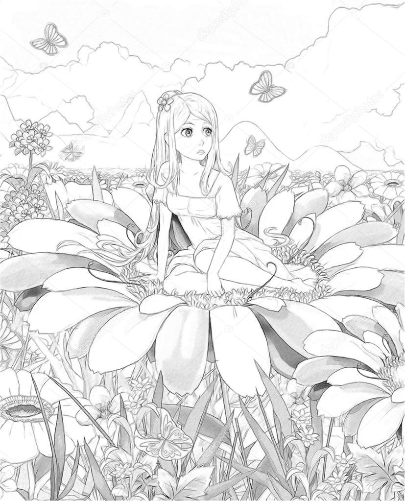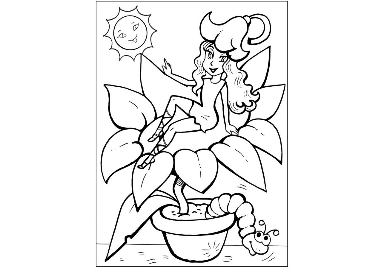 Раскраска для девочек 5 лет Дюймовочка в цветке