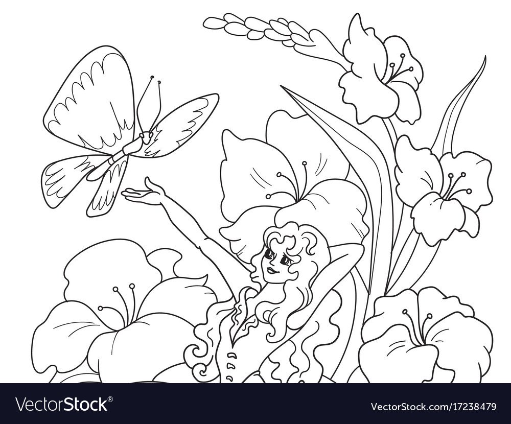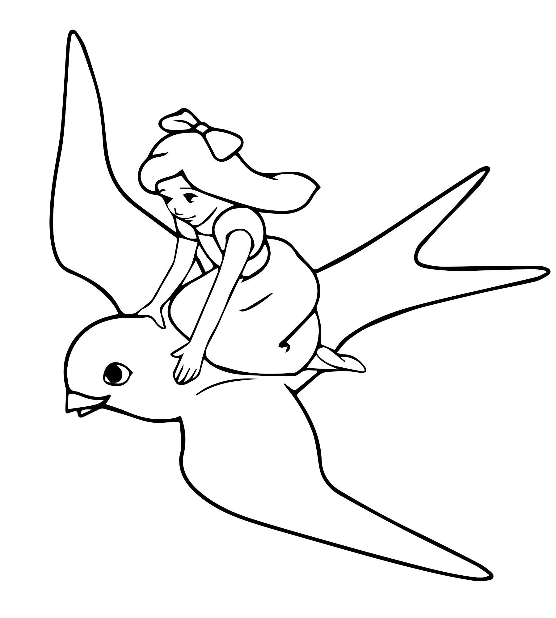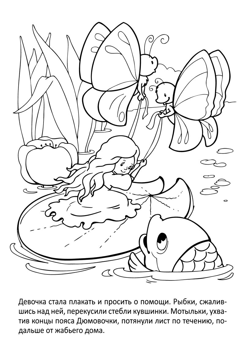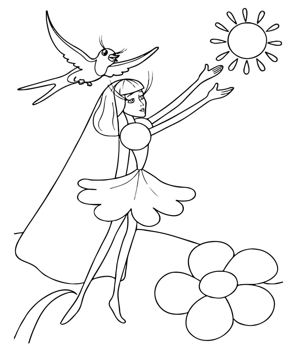 Раскраски по сказкам Андерсена для детей Дюймовочка