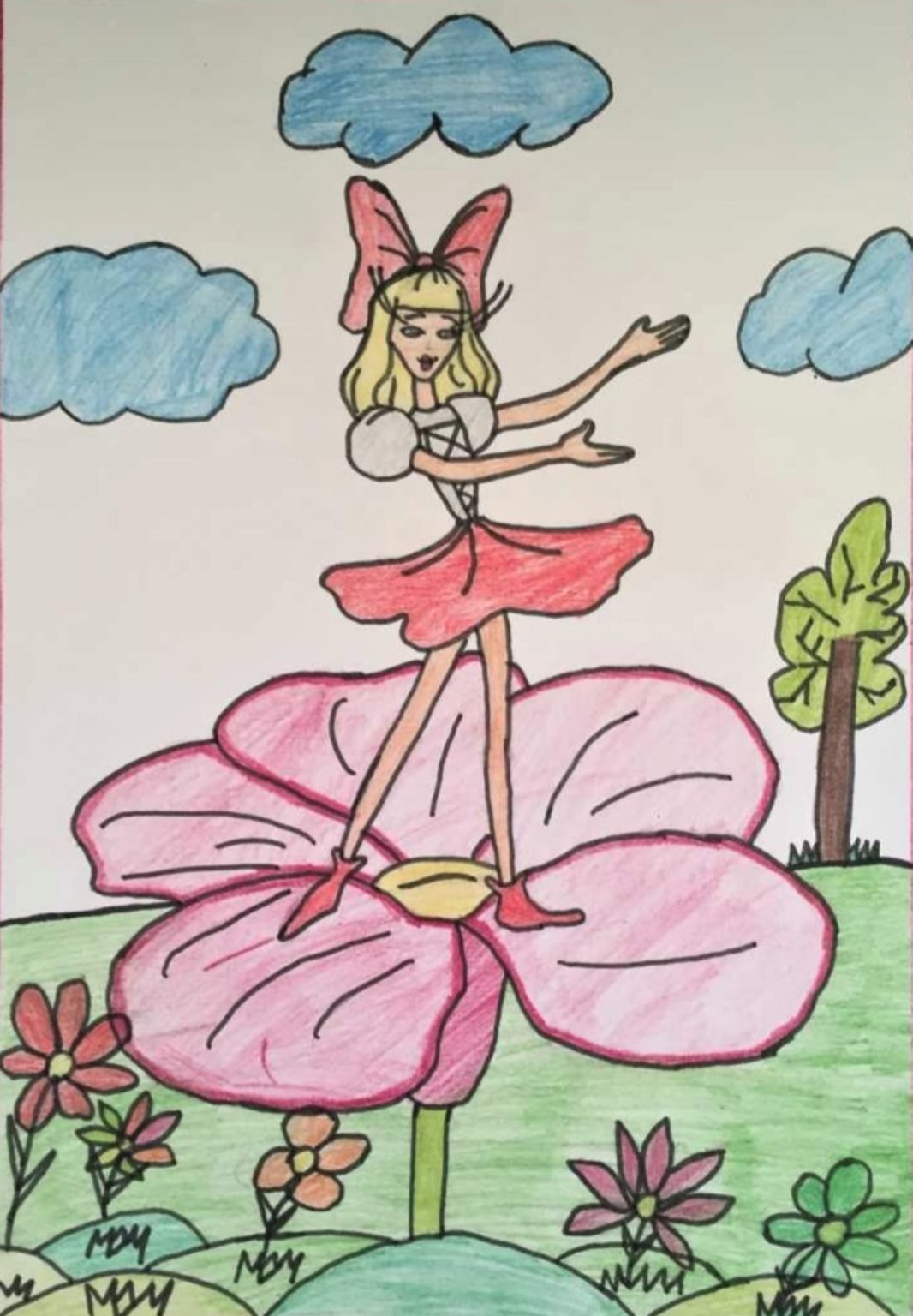 Рисунок Дюймовочки для детей карандашом для срисовки