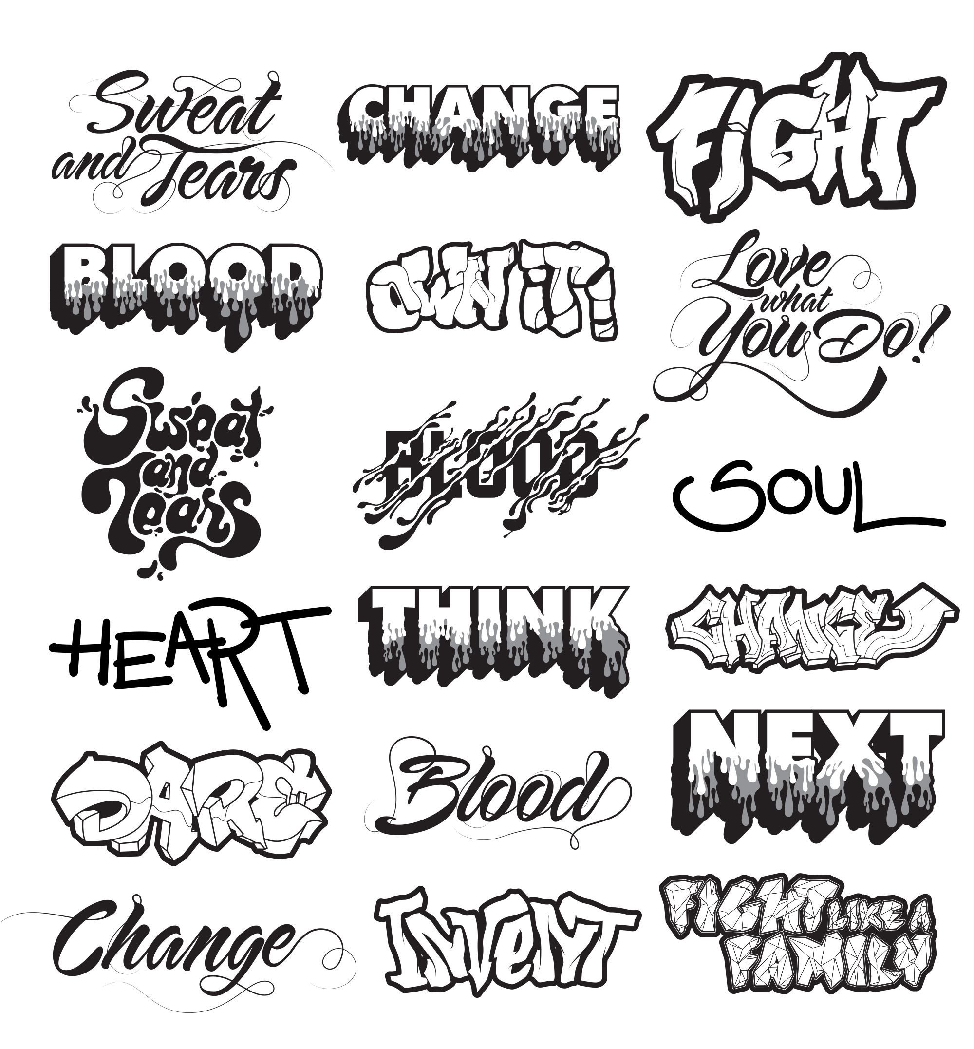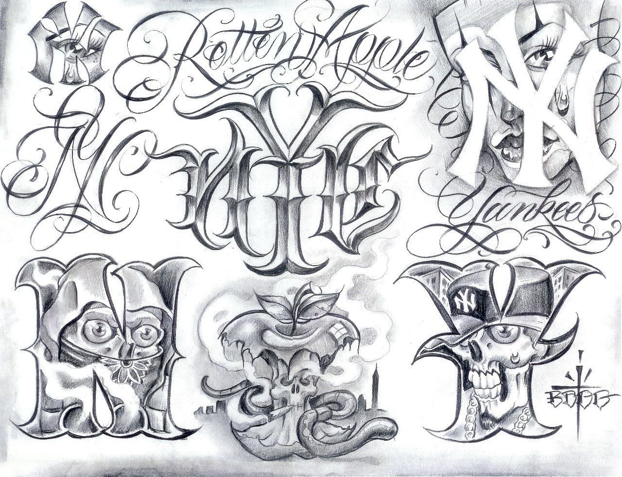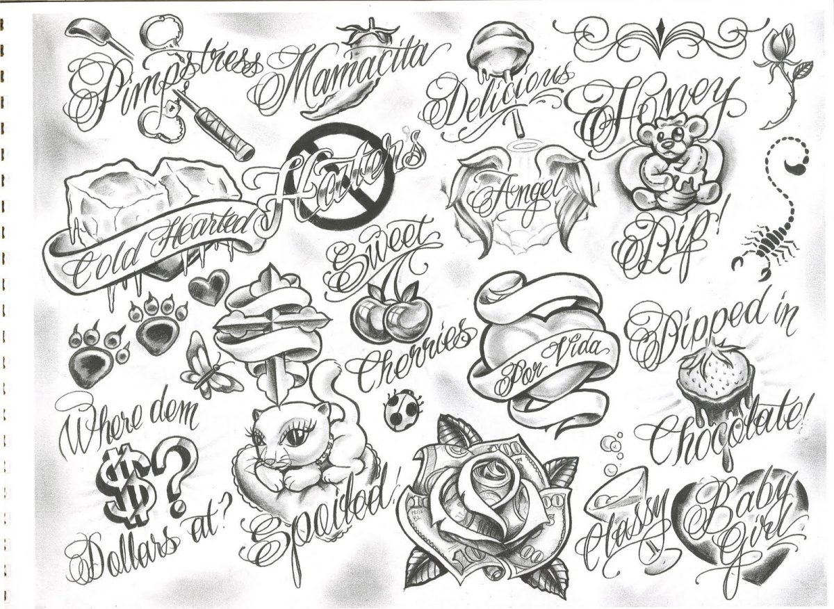 Татуировки эскизы черно белые надписи