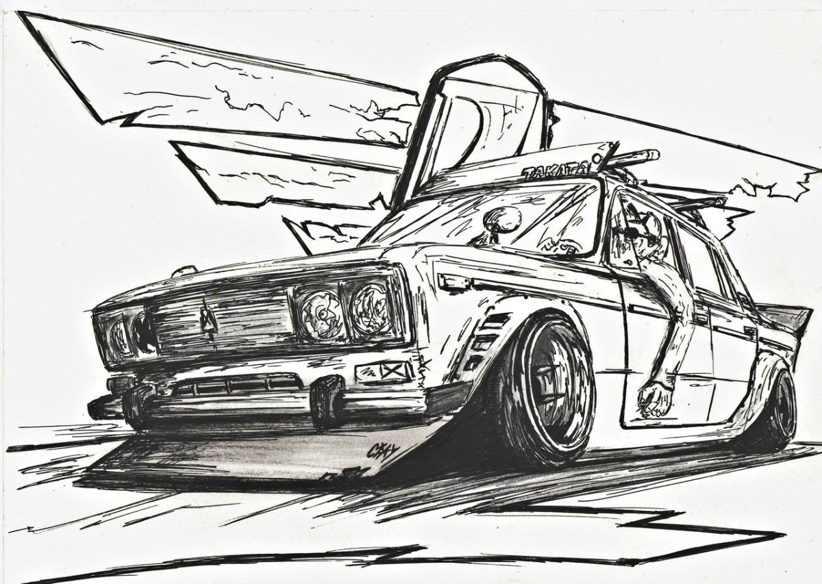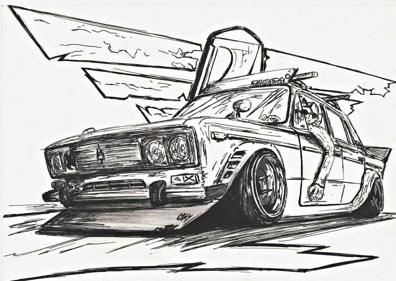 Машины в дрифте карандашом