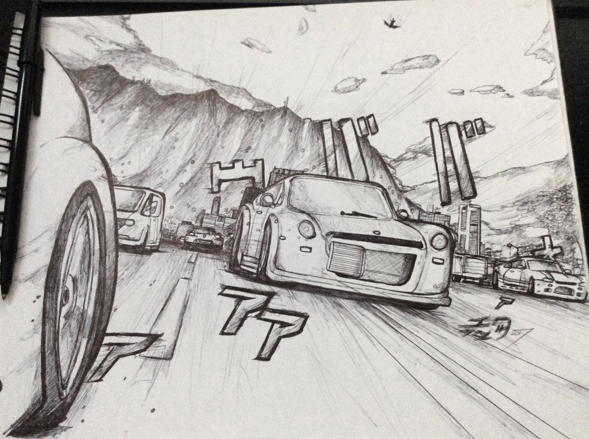 Гонка рисунок карандашом