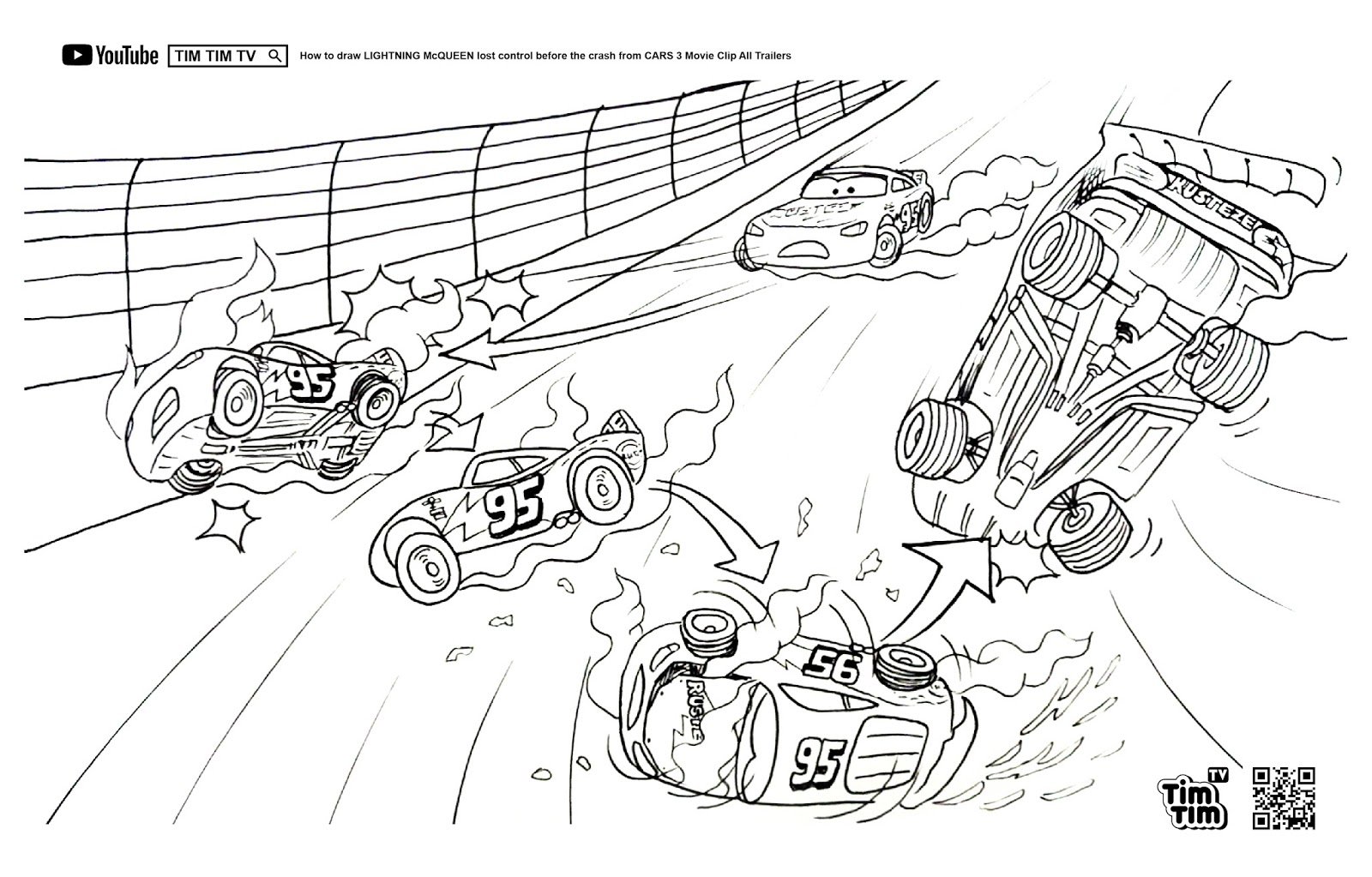 Тачки 3 молния Маккуин авария раскраска