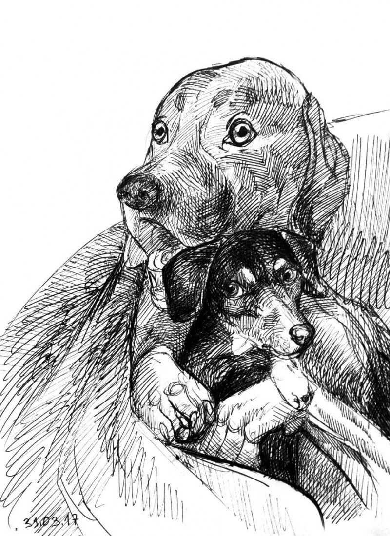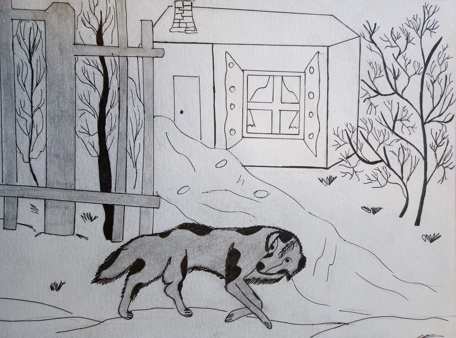 Зарисовка к произведению Барбос и Жулька нарисовать поэтапно