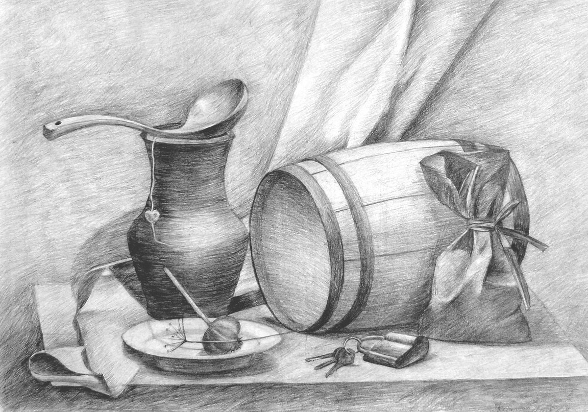 Натюрморт карандашом сложный и красивый