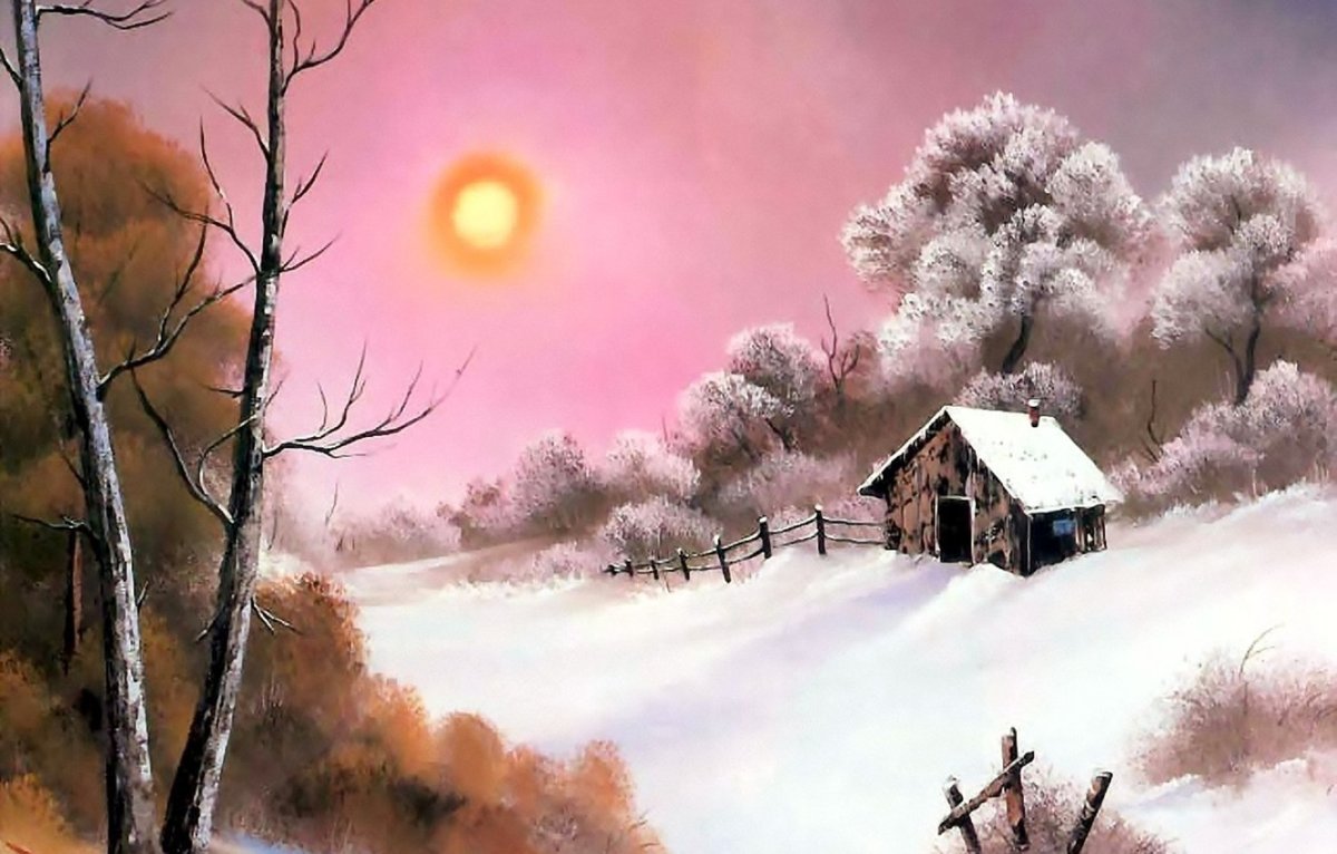 Картины художников зима Bob Ross