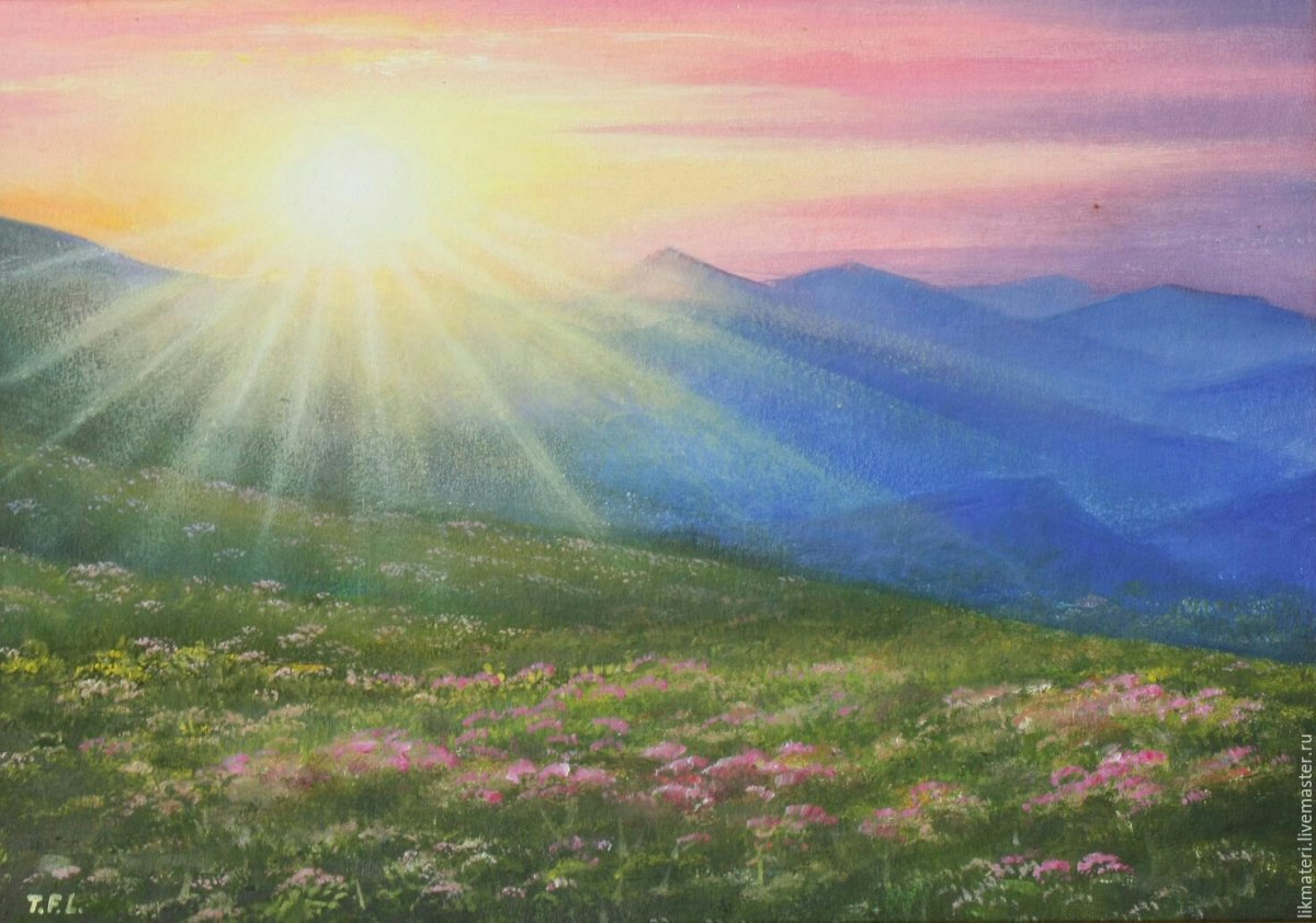Картина рассвет в горах