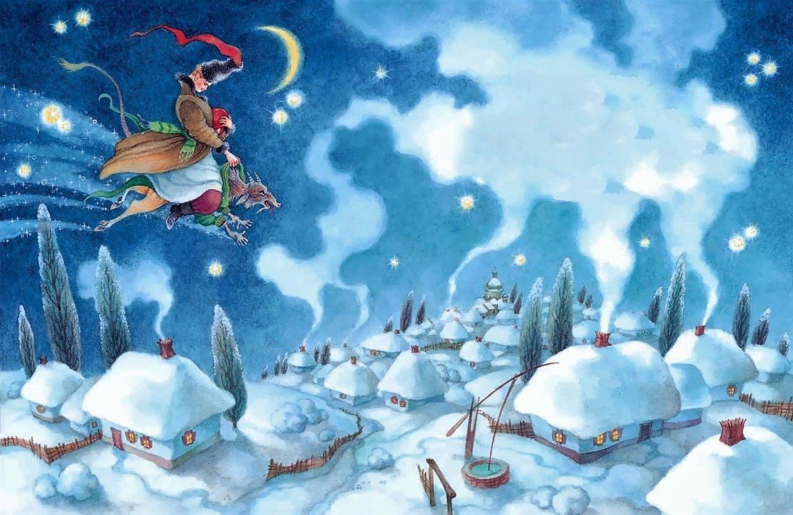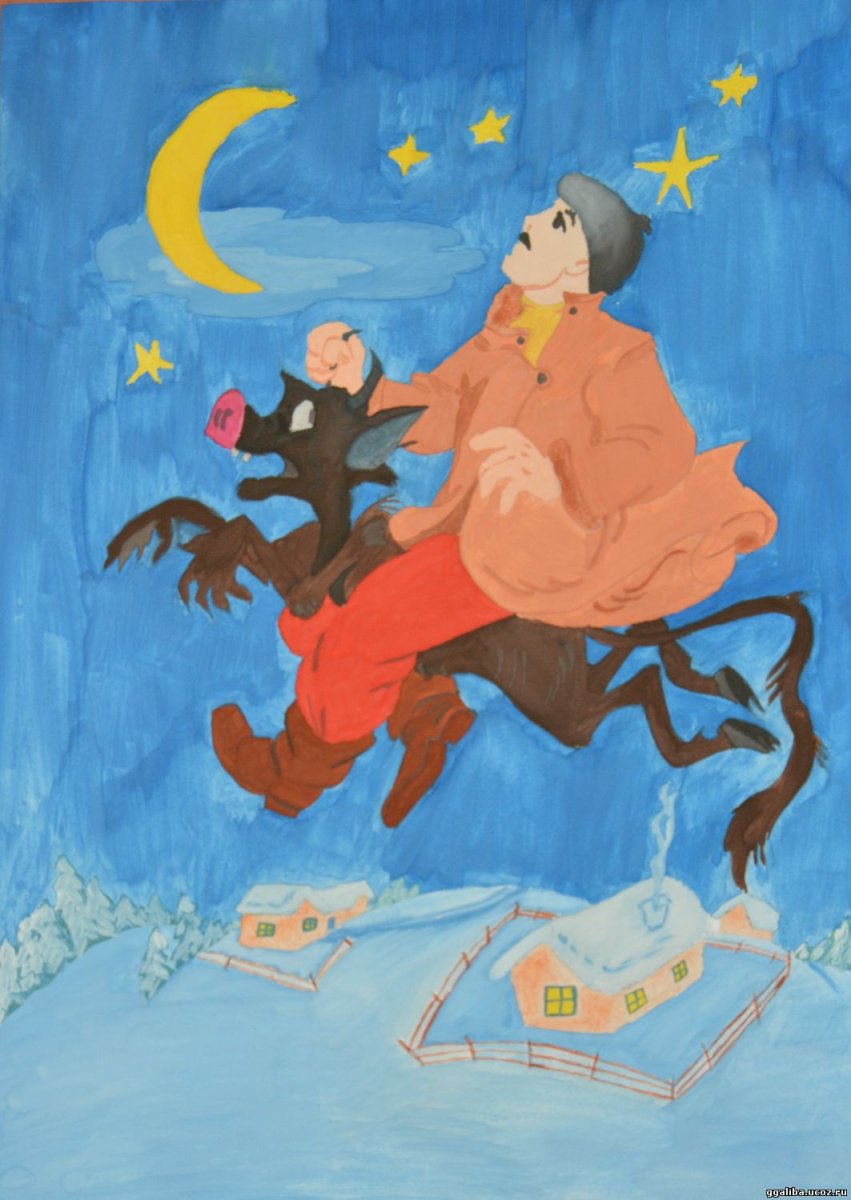 Иллюстрацию к произведению н.в.Гоголя "ночь перед Рождеством"