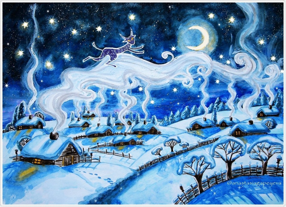 Ольга Ионайтис иллюстрации ночь перед Рождеством