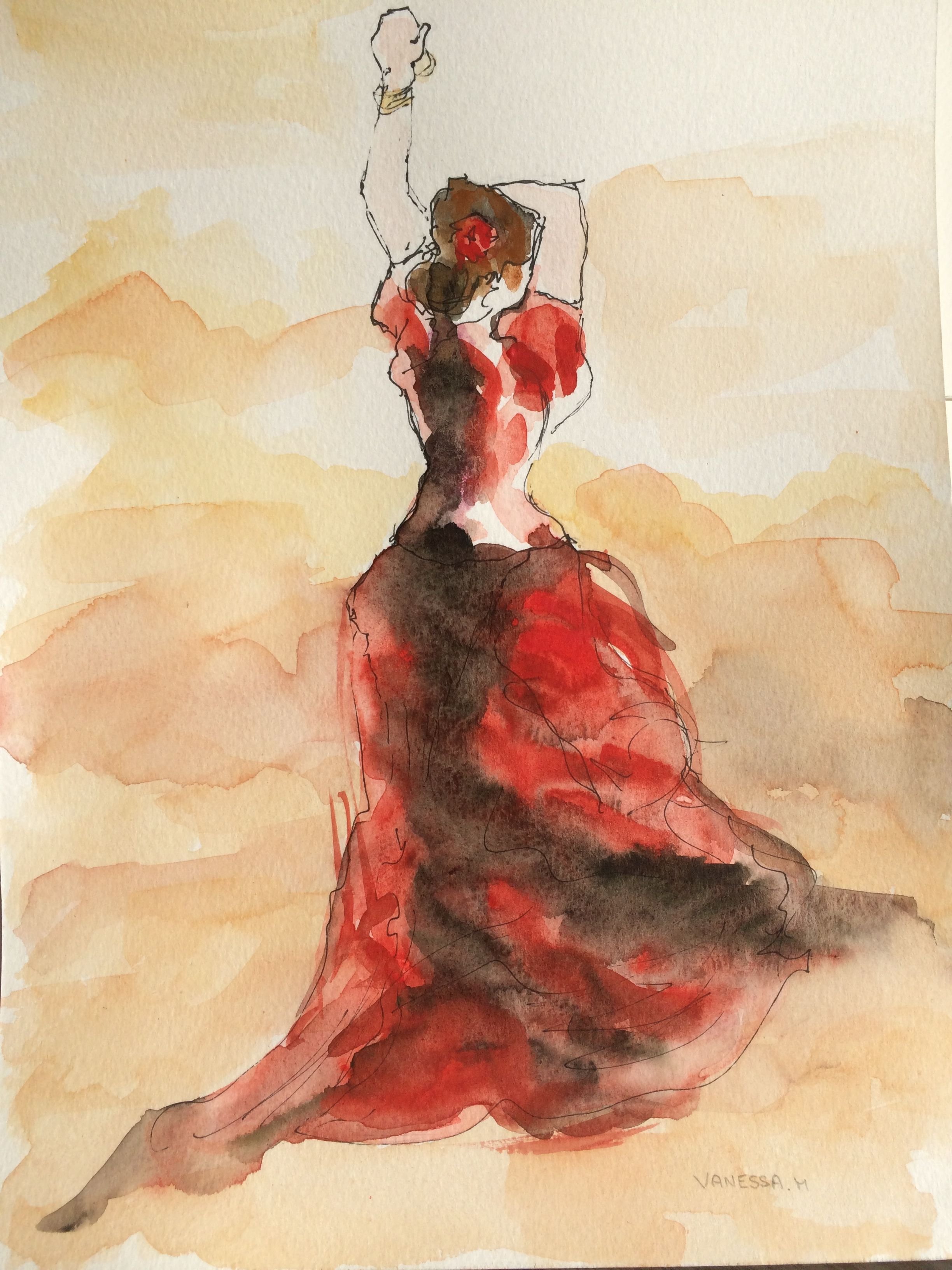 Фламенко живопись акварель