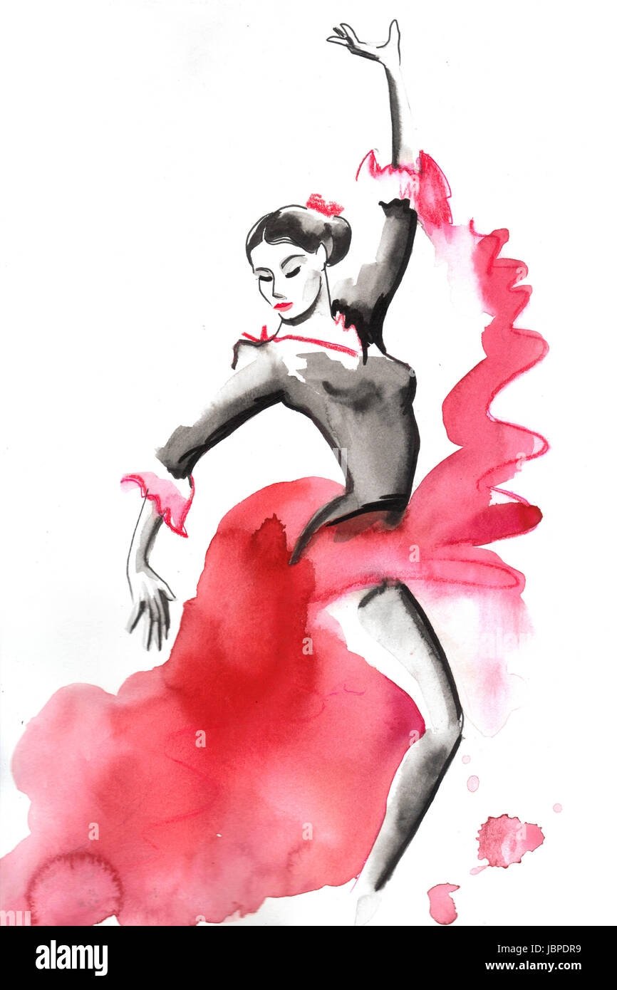 Акварель танец фламенко Испания