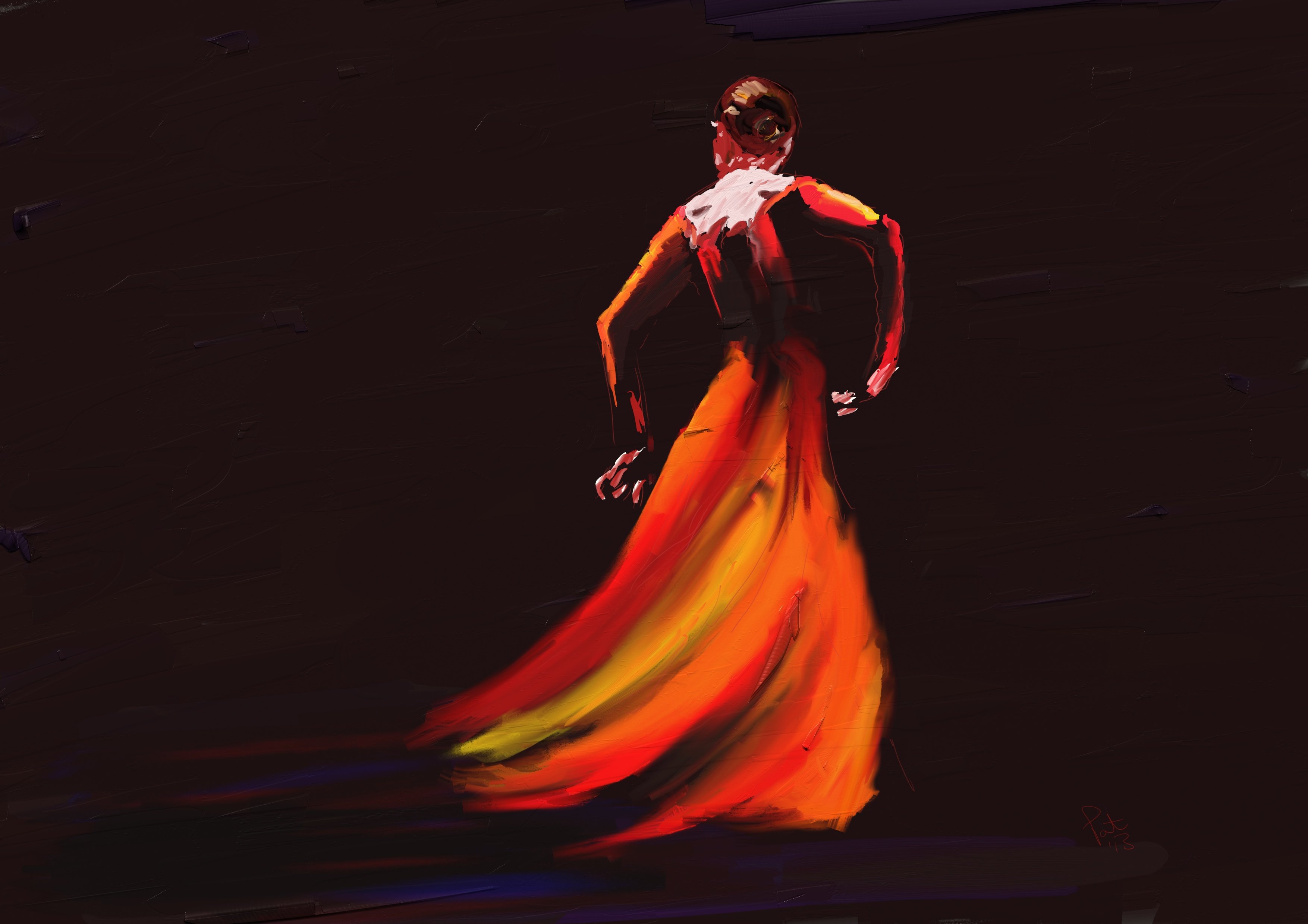 Женский силуэт фламенко красками