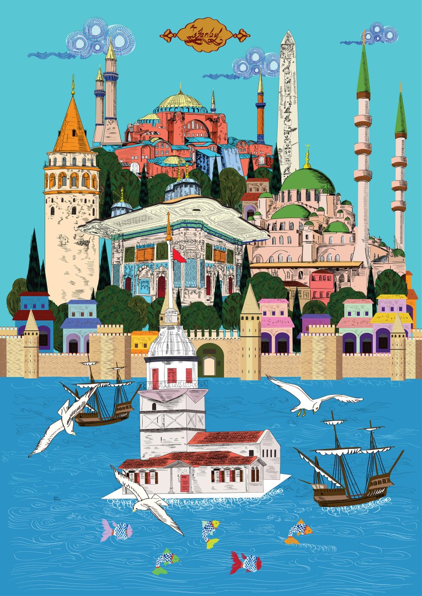 Иллюстрации достопримечательностей Стамбула