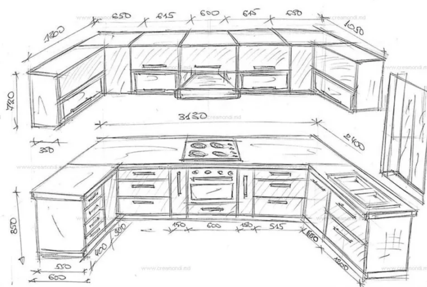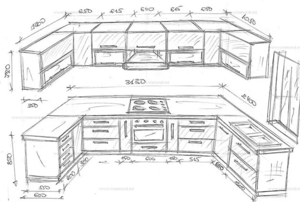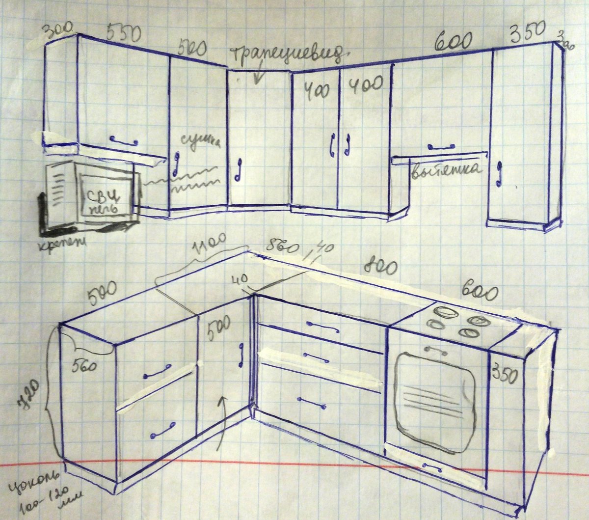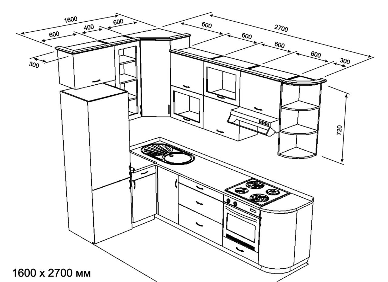 Чертежи кухонных гарнитуров угловых с размерами в хрущевке ,1600-2000мм