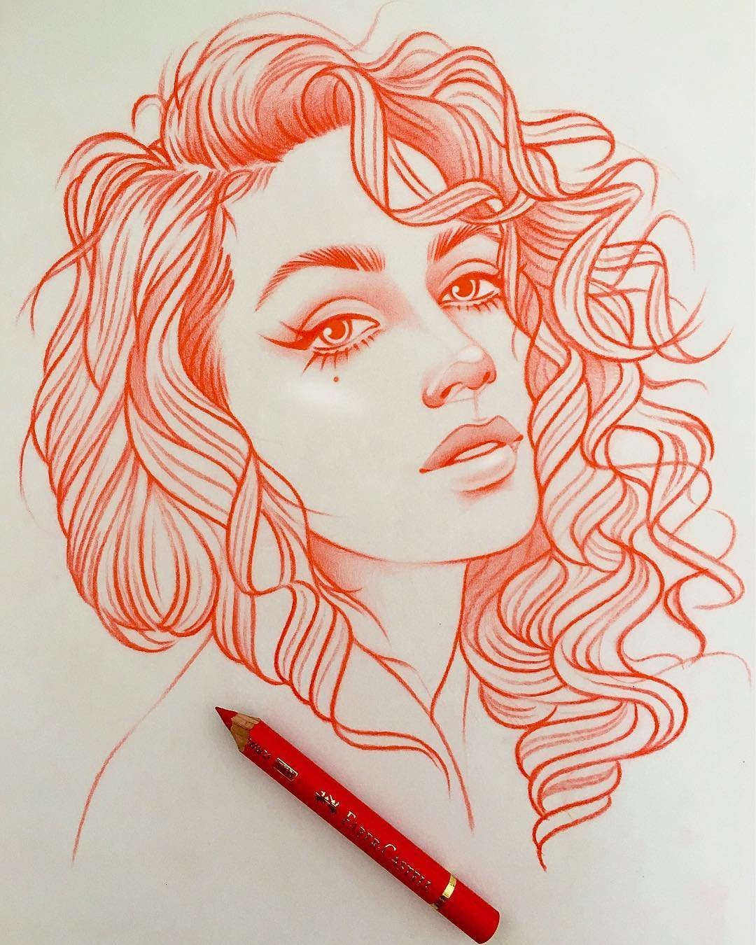 Девушки с кудрявыми волосами карандашом
