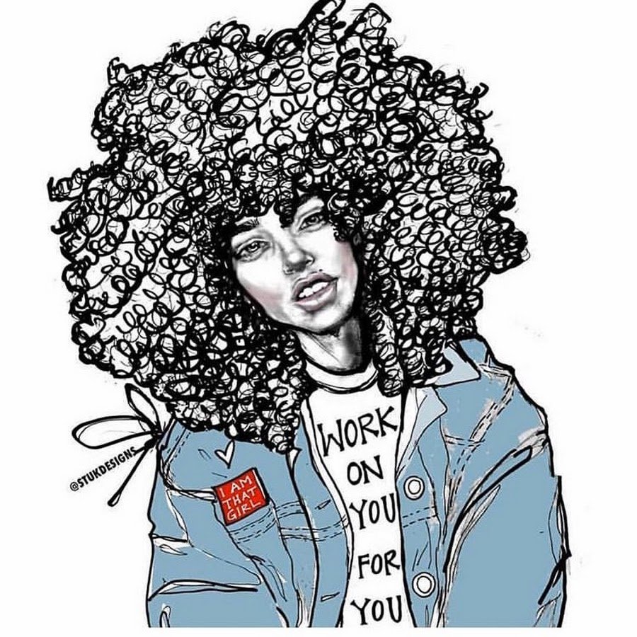 Нарисованная кудрявая девушка
