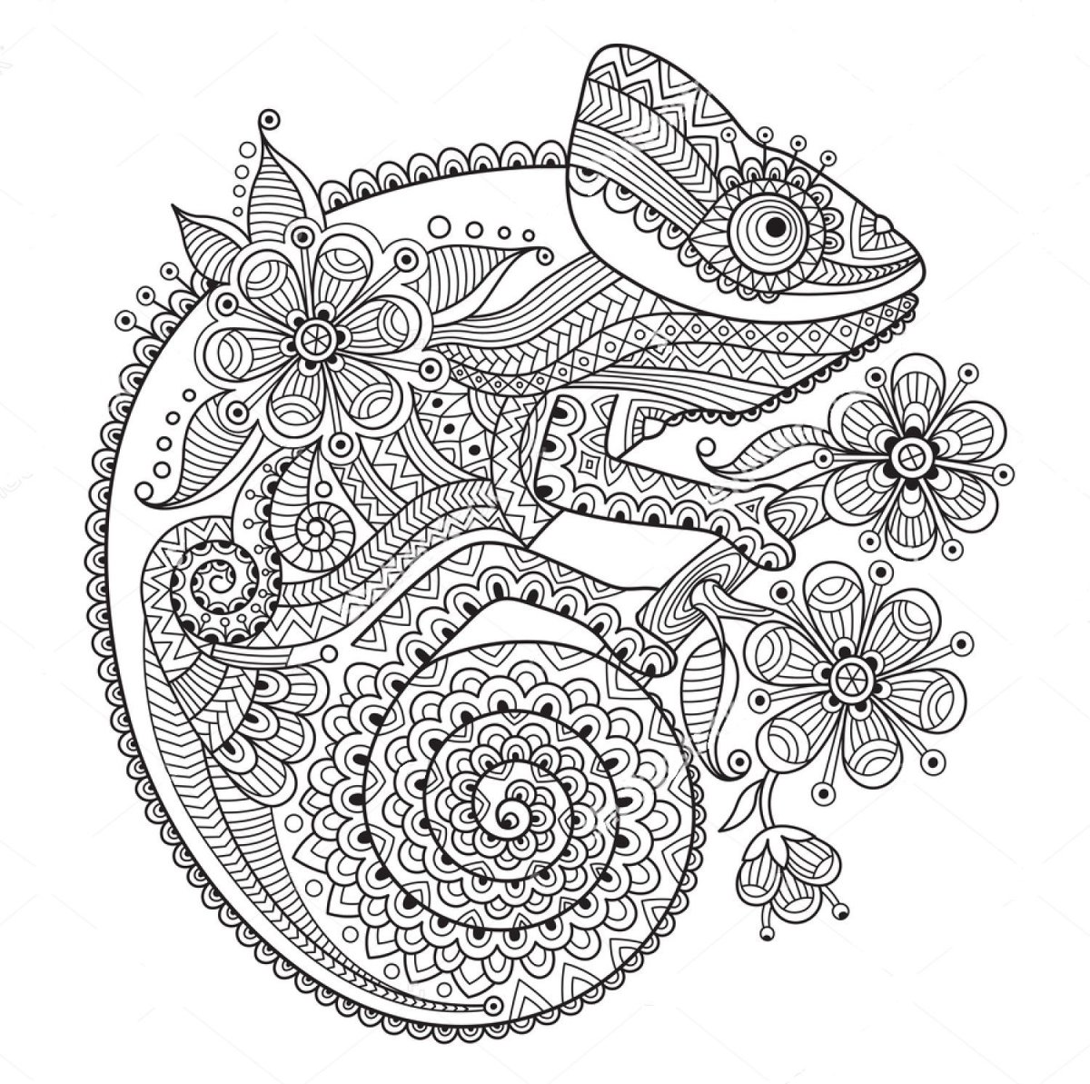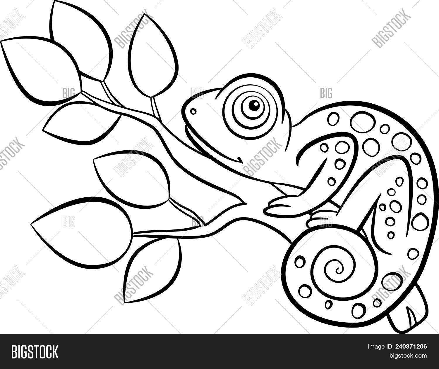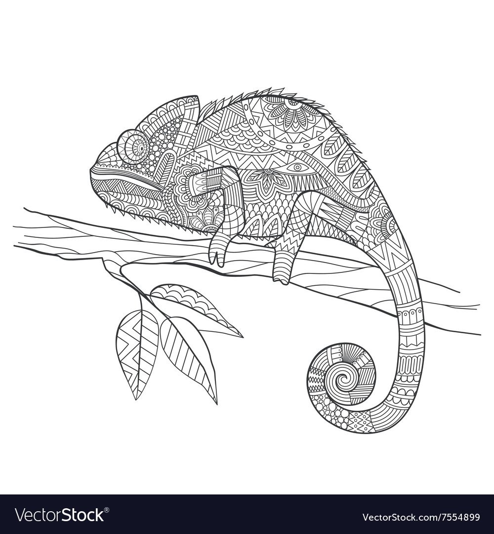 Хамелеон иллюстрации черно белые