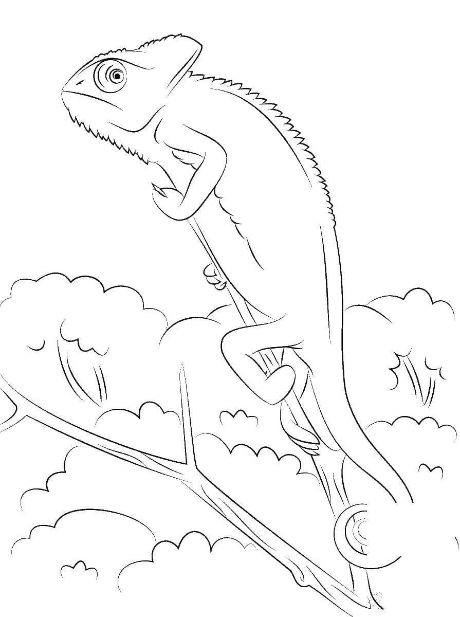 Хамелеон на дереве раскраска