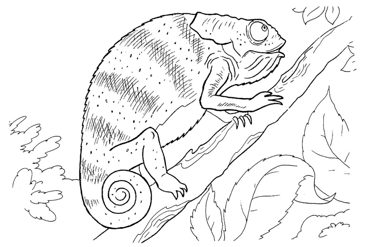 Хамелеон на ветке раскраска