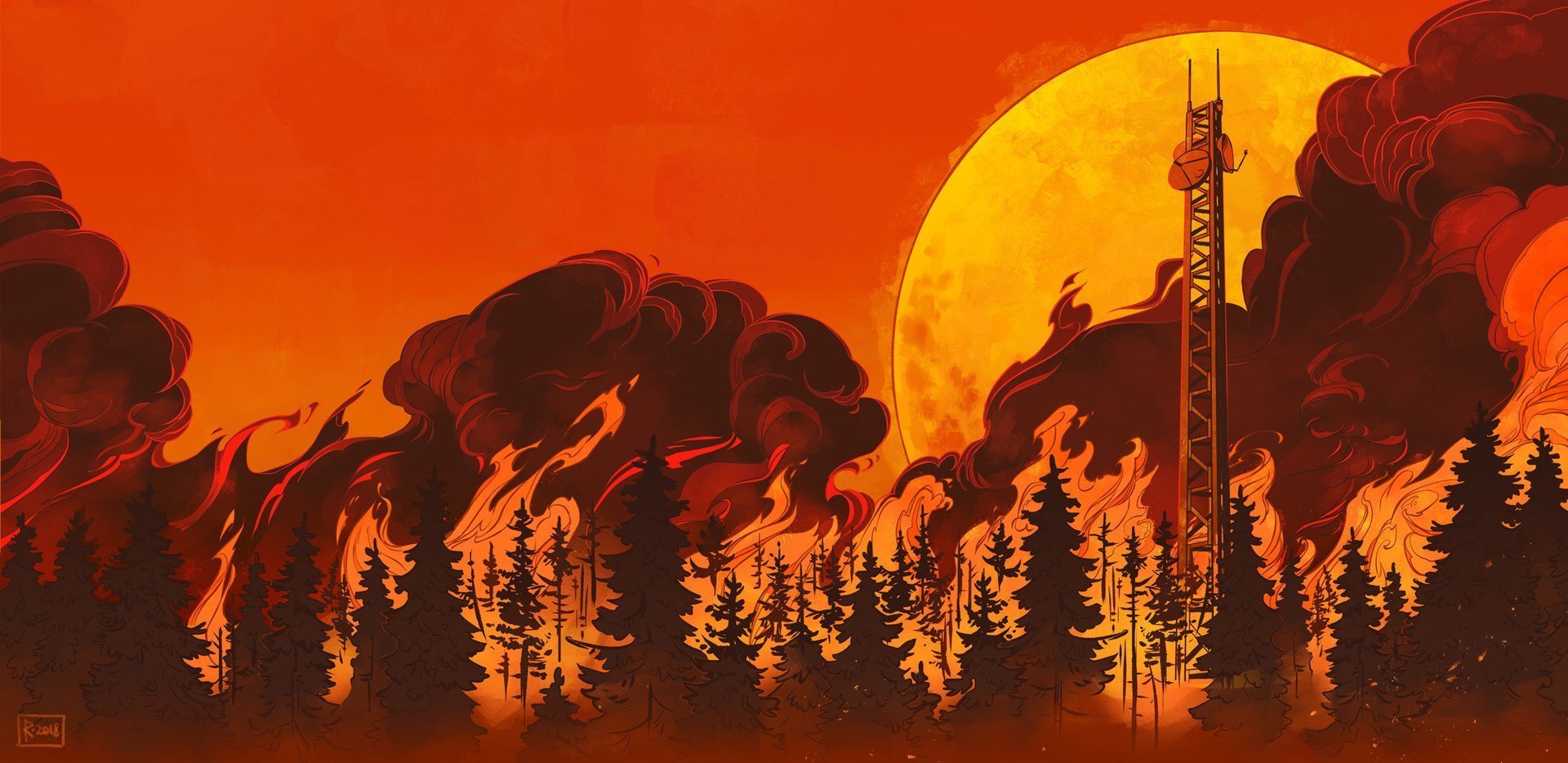 Лес в огне стилизация