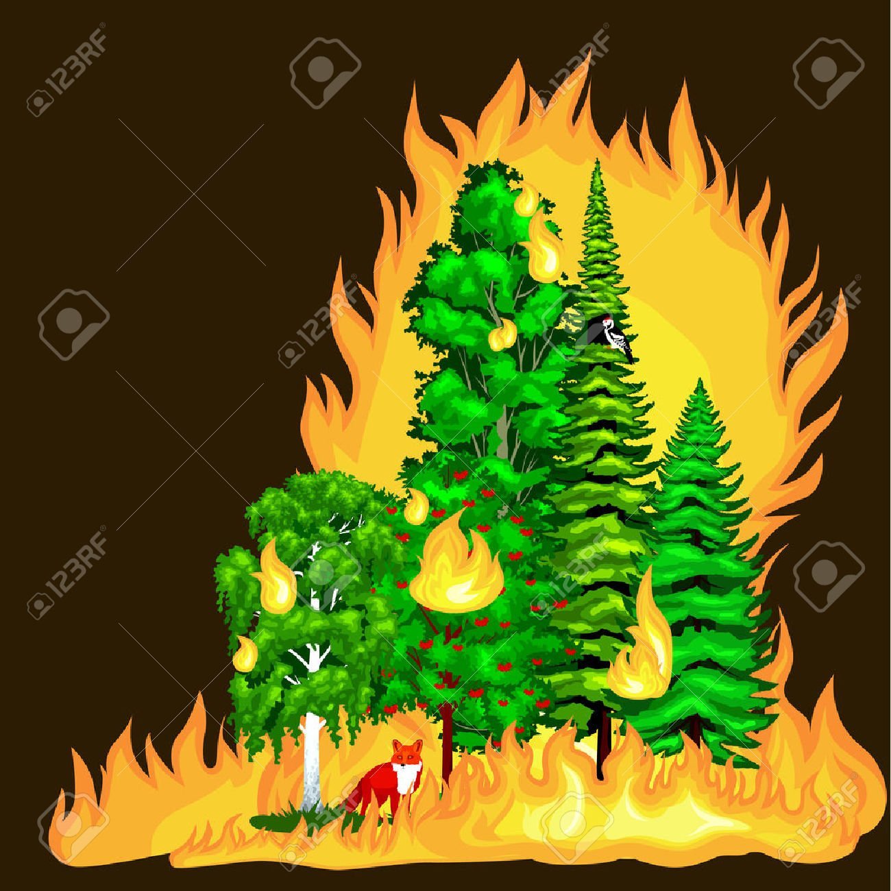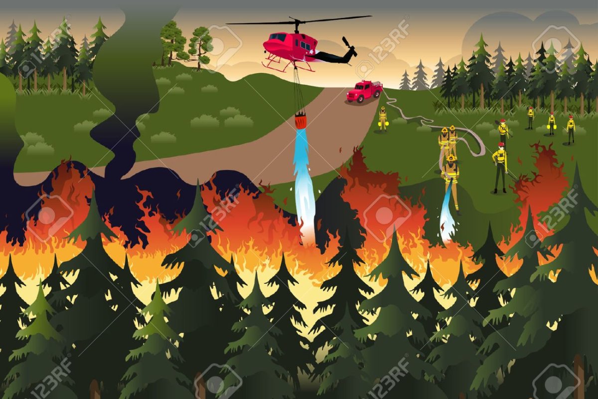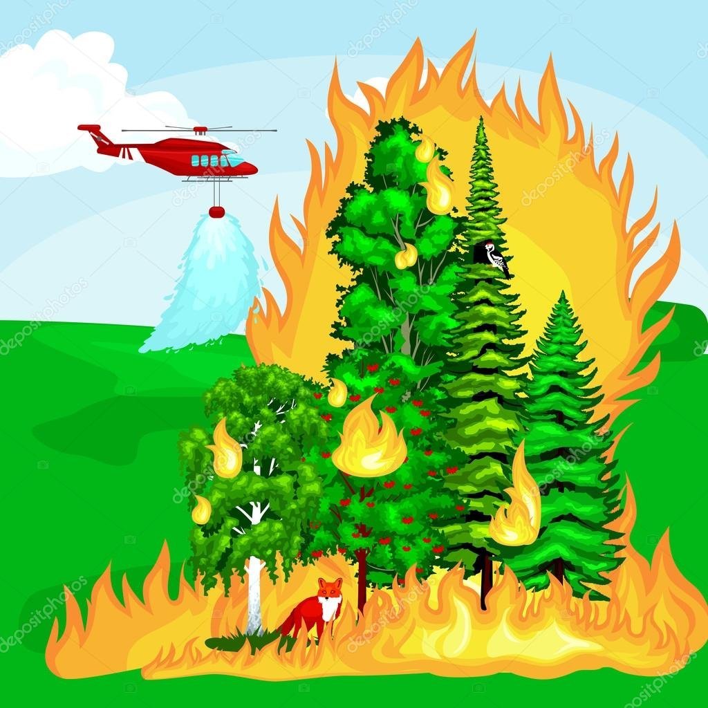 Пожар в лесу рисунок