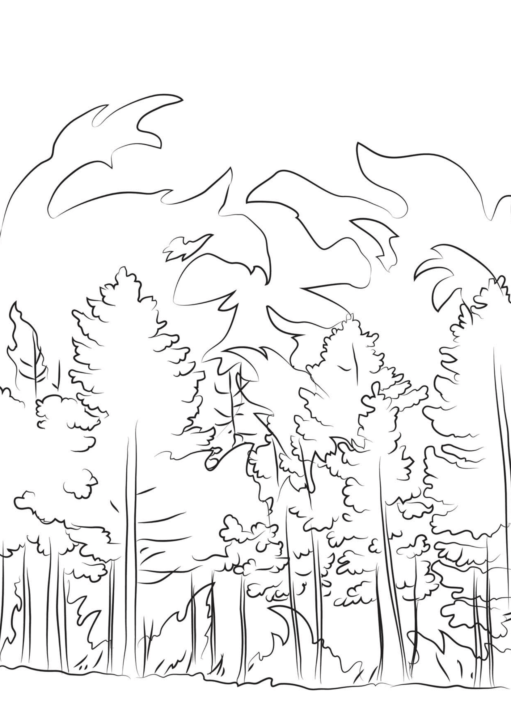 Горящий лес рисунок