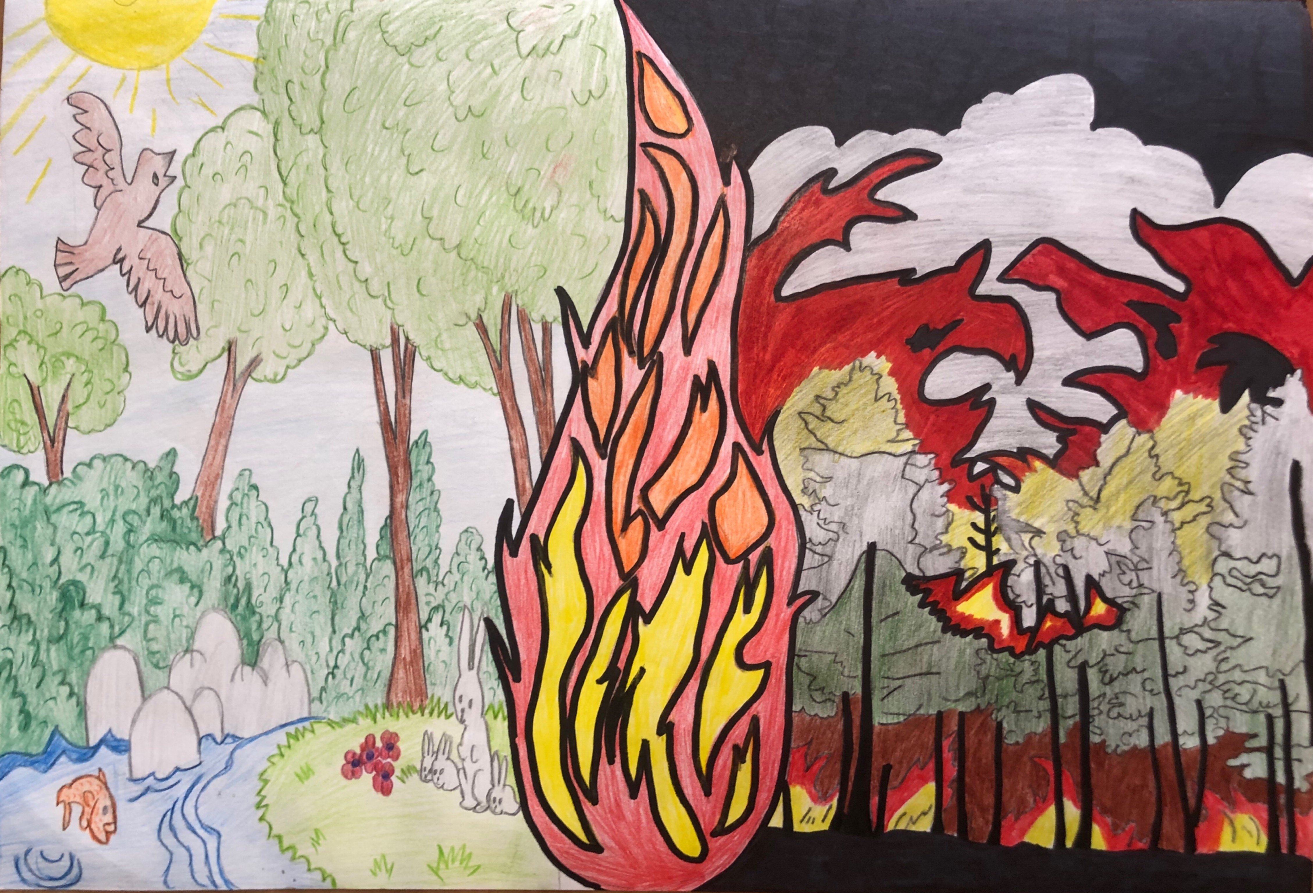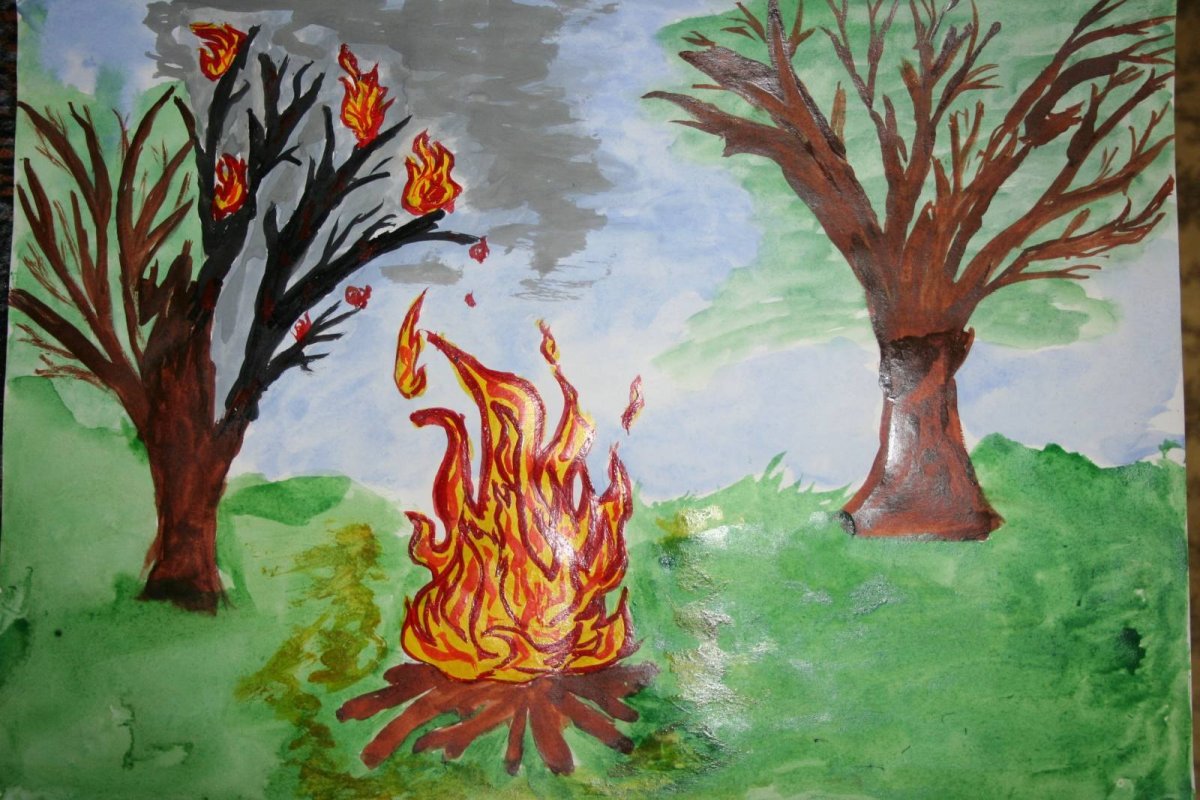 Лесной пожар рисунок для детей