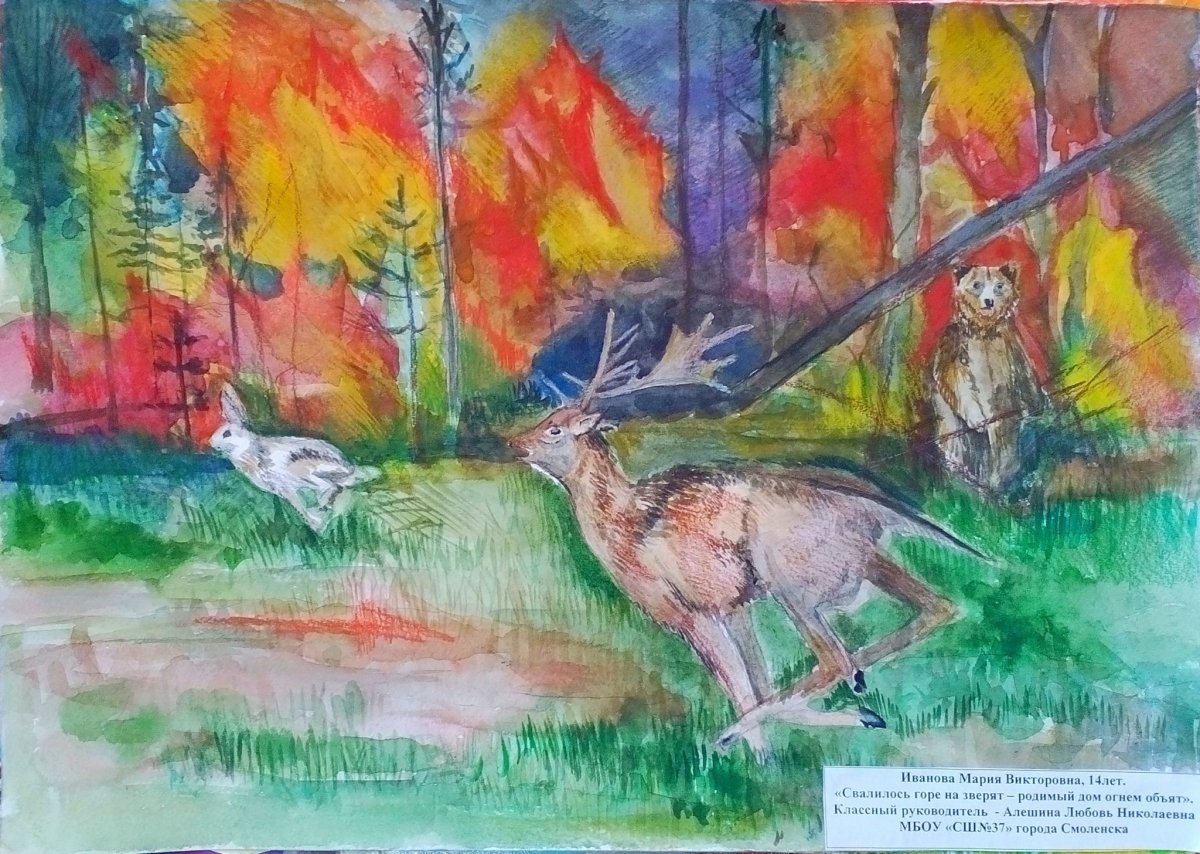 Рисунок на тему пожар в лесу