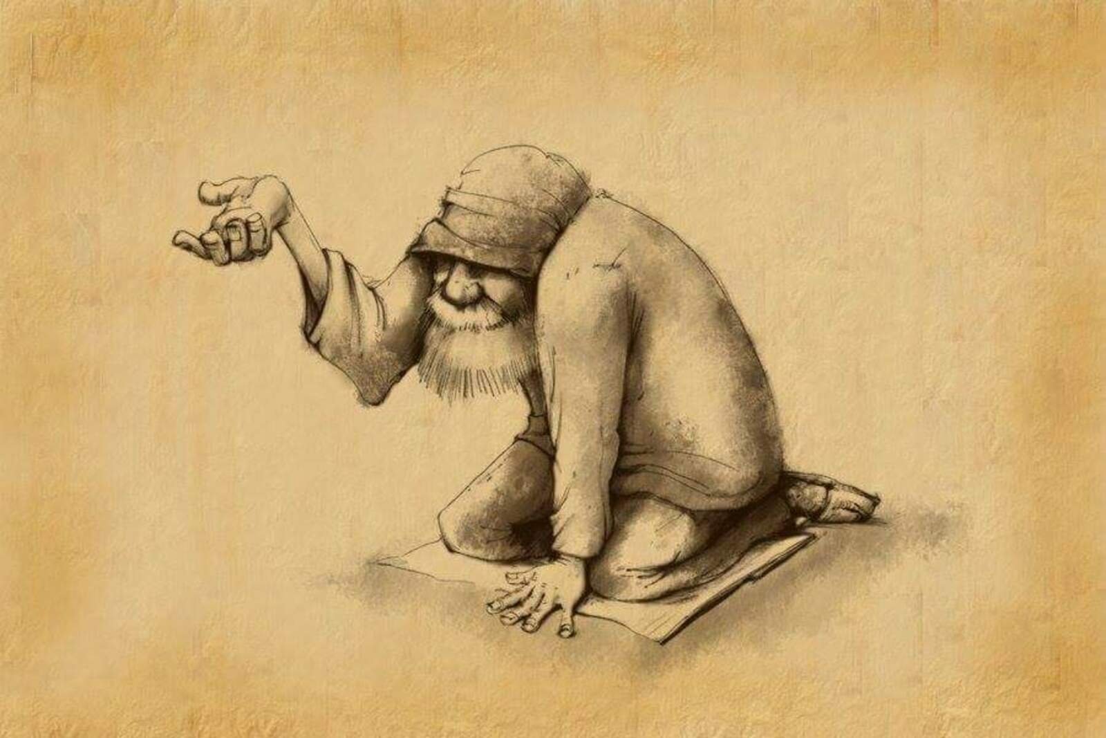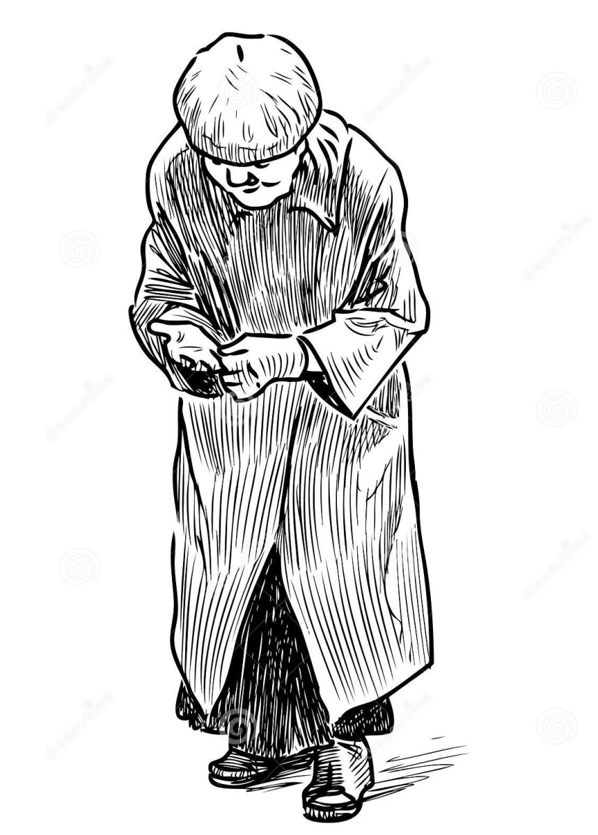 Как нарисовать старика с шапкой в руке
