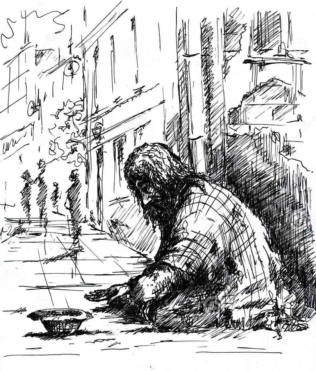 Нищий рисунок карандашом
