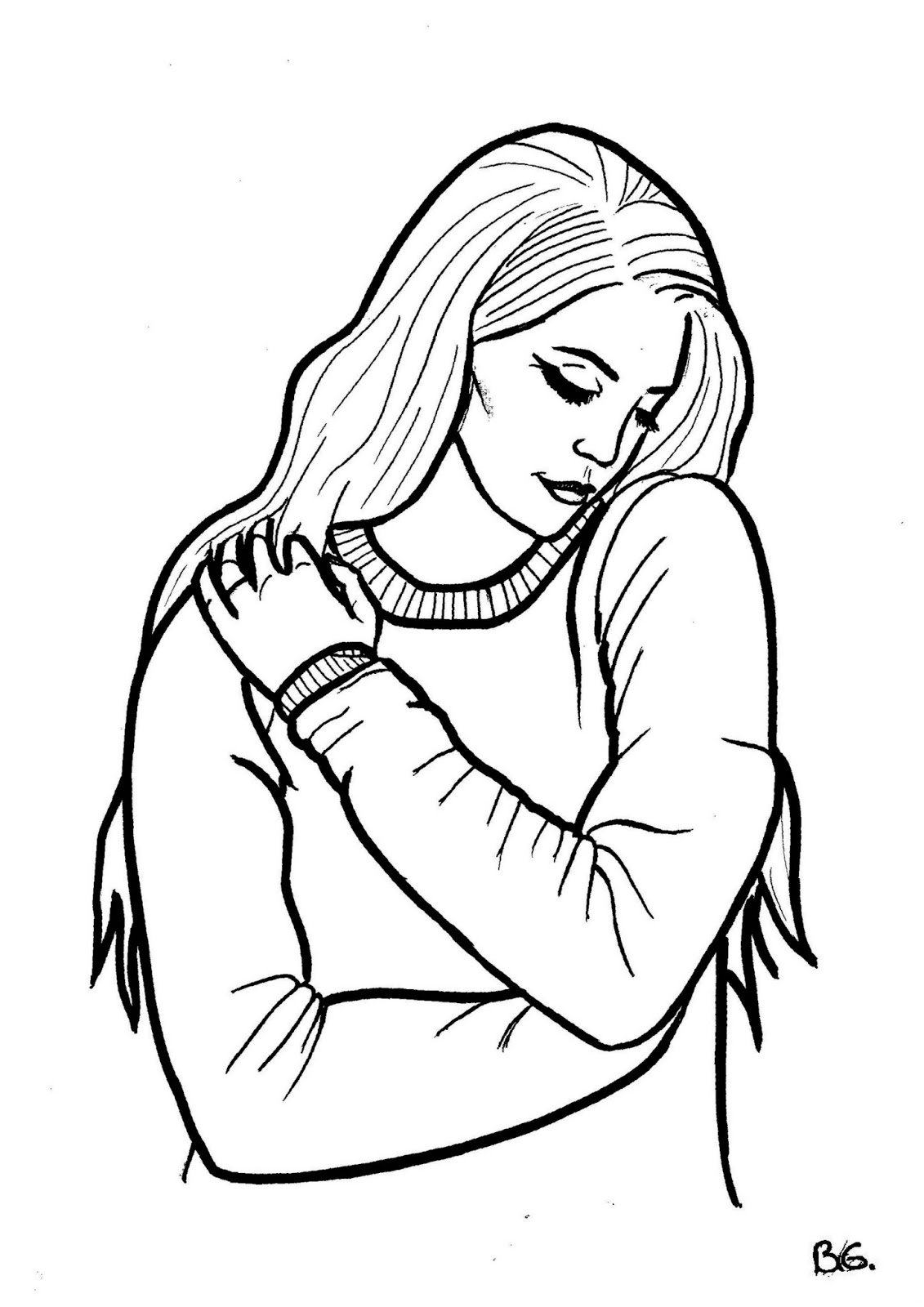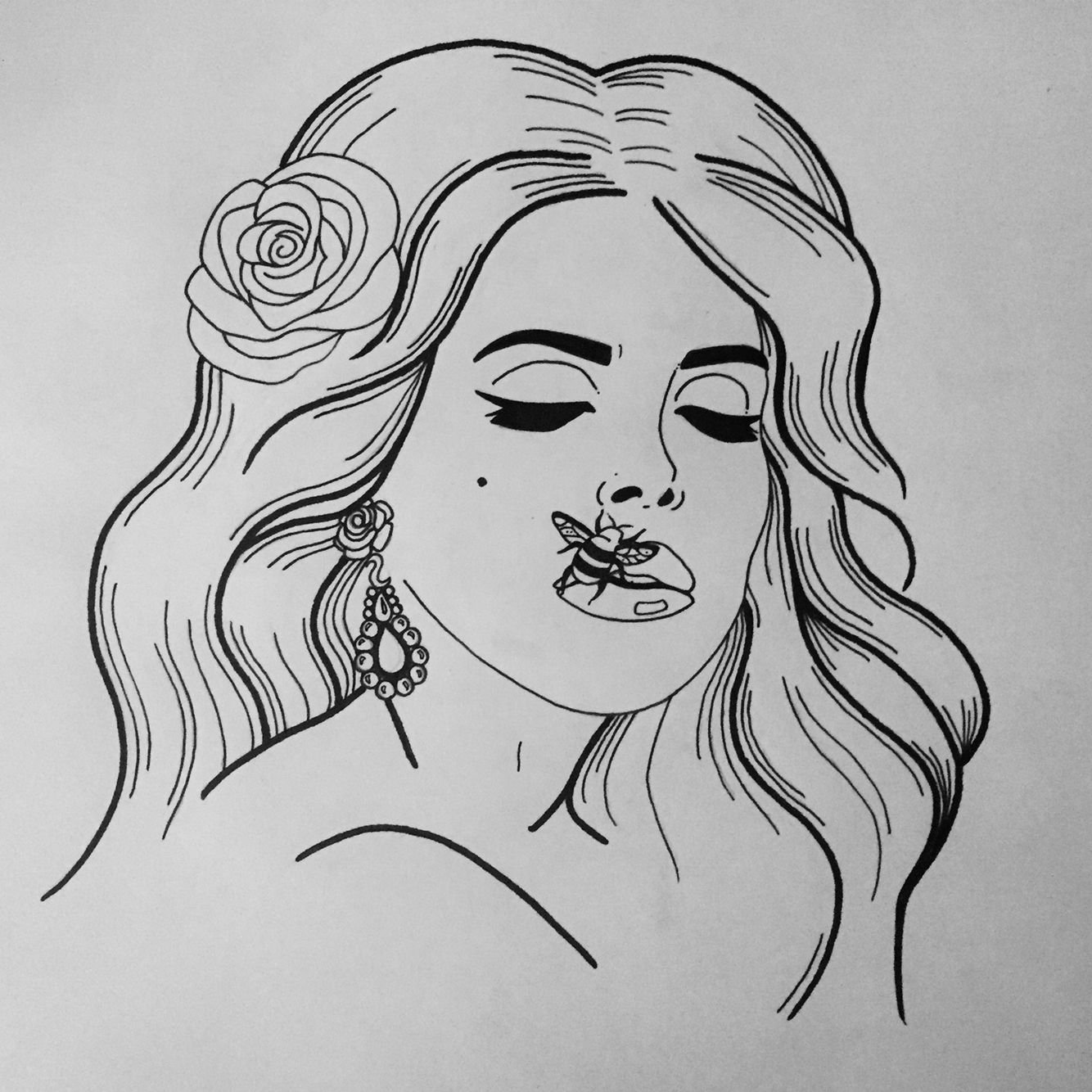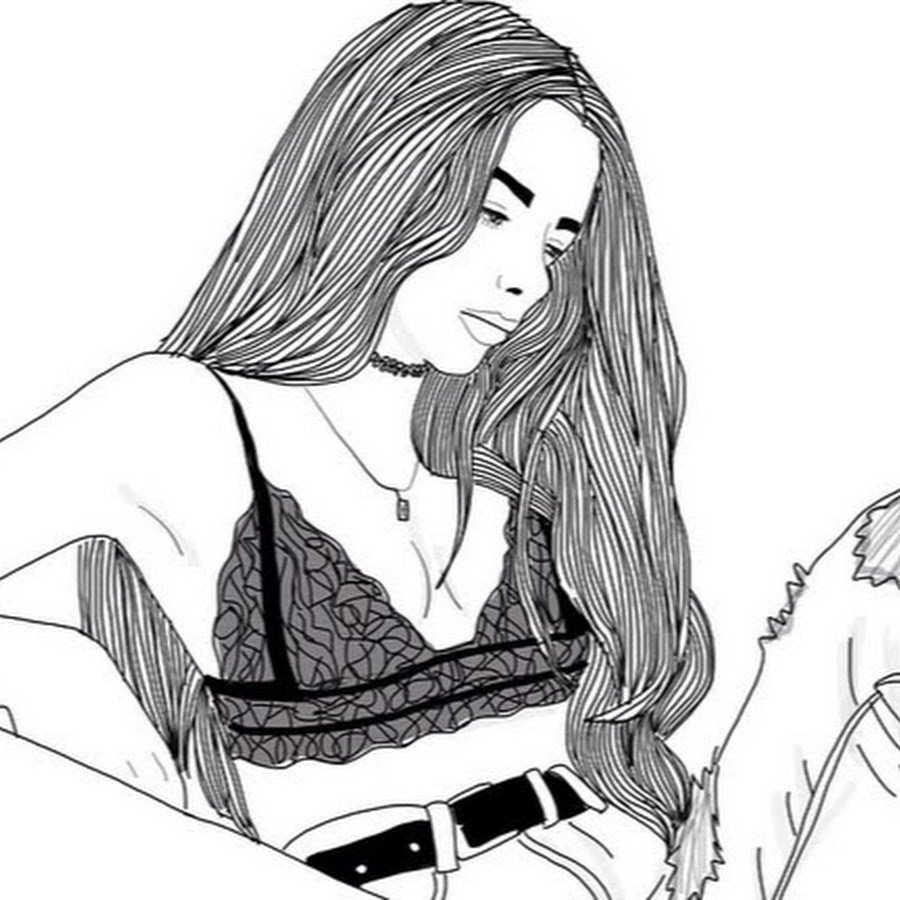 Чёрно-белые рисунки для срисовки девушка