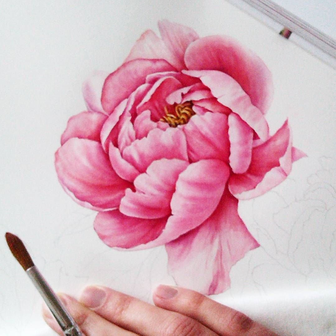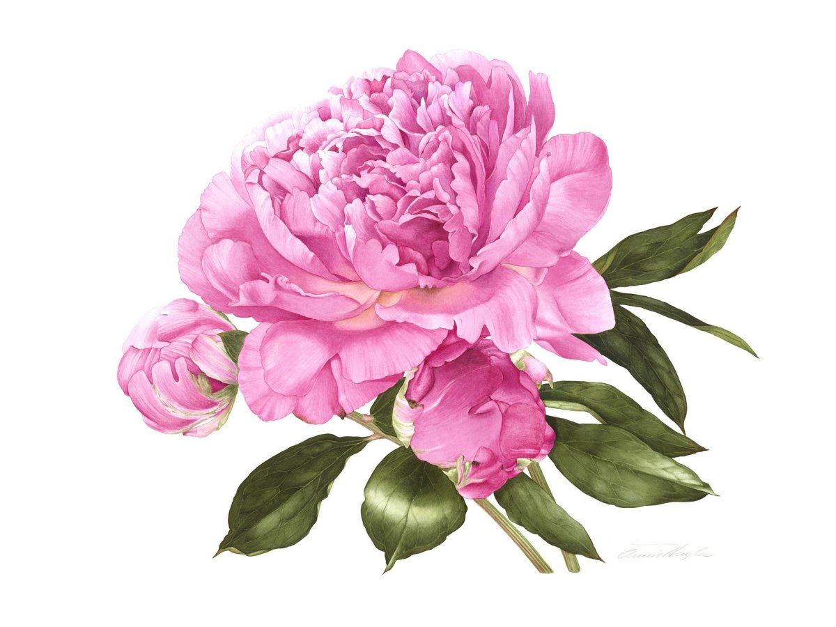 Пион акварель Ботаническая