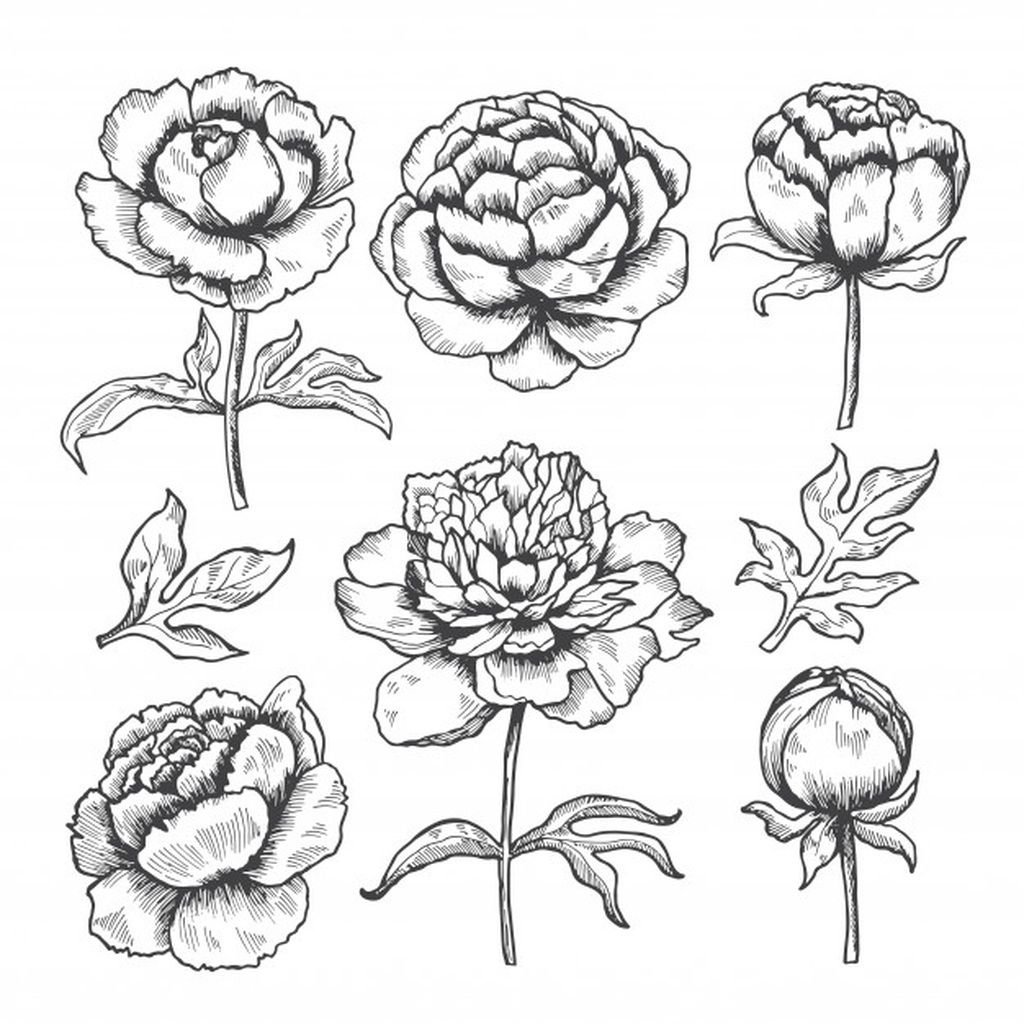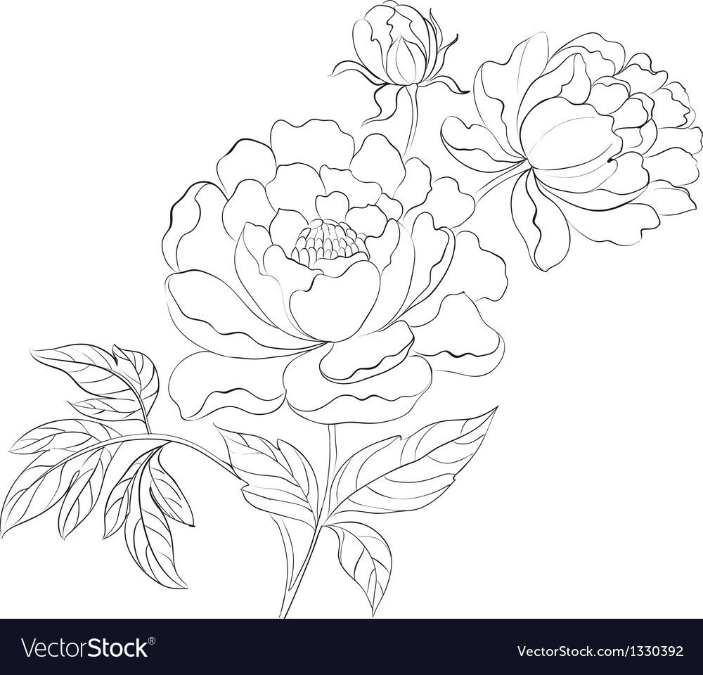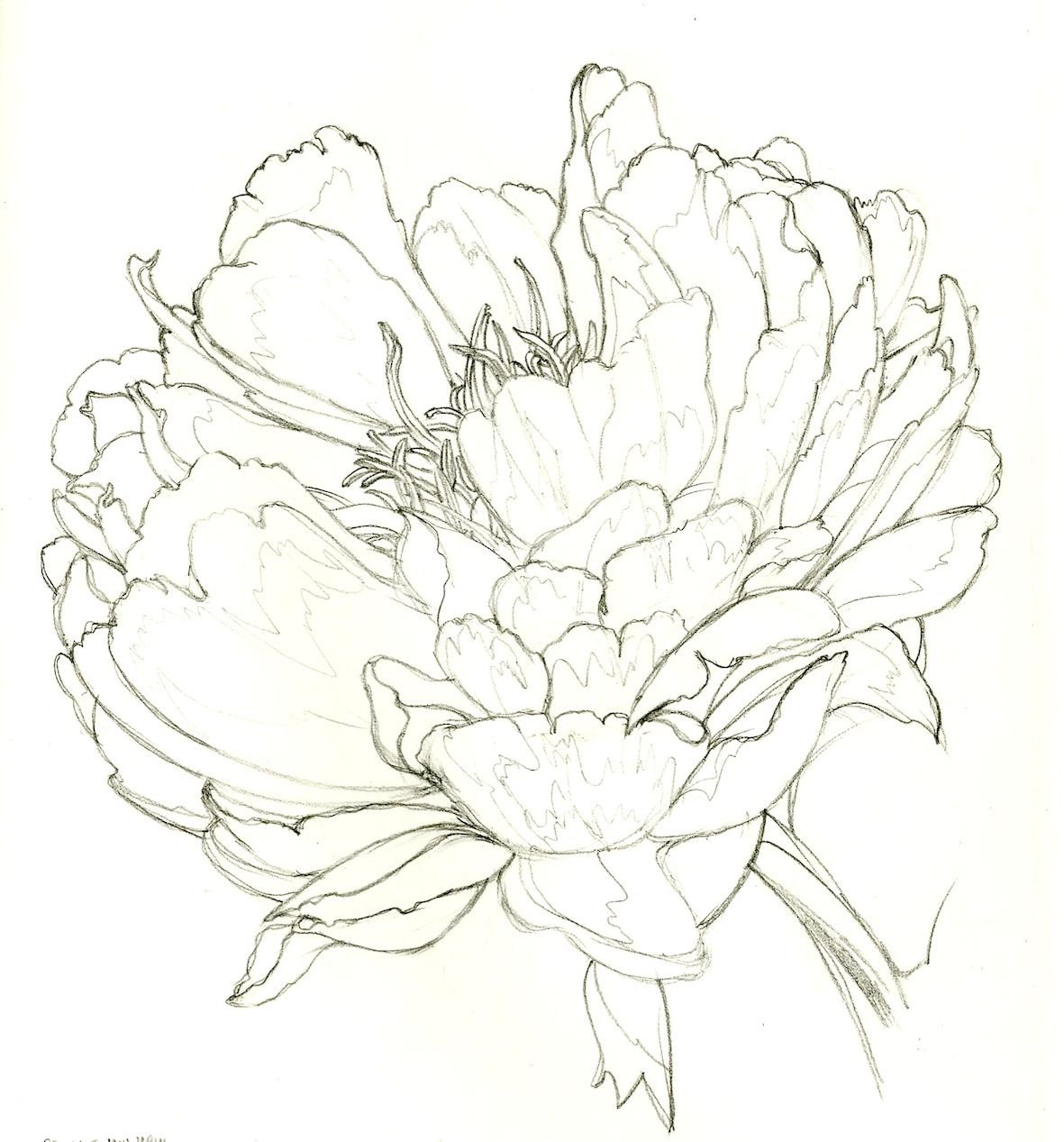 Пионы карандашом для срисовки