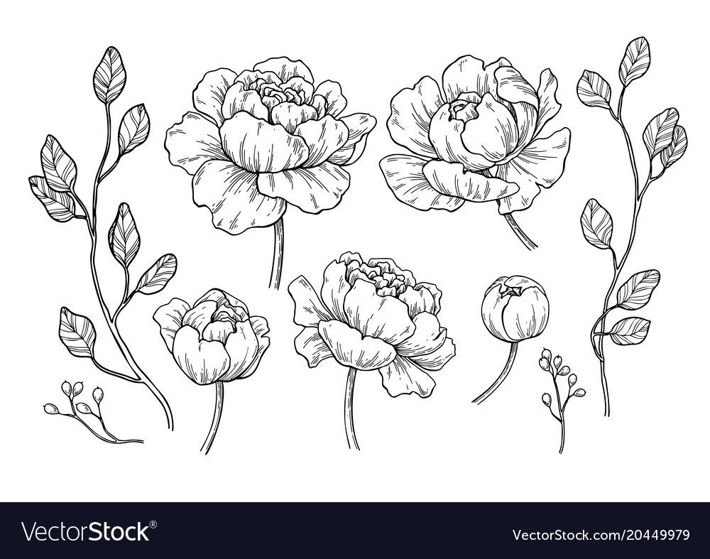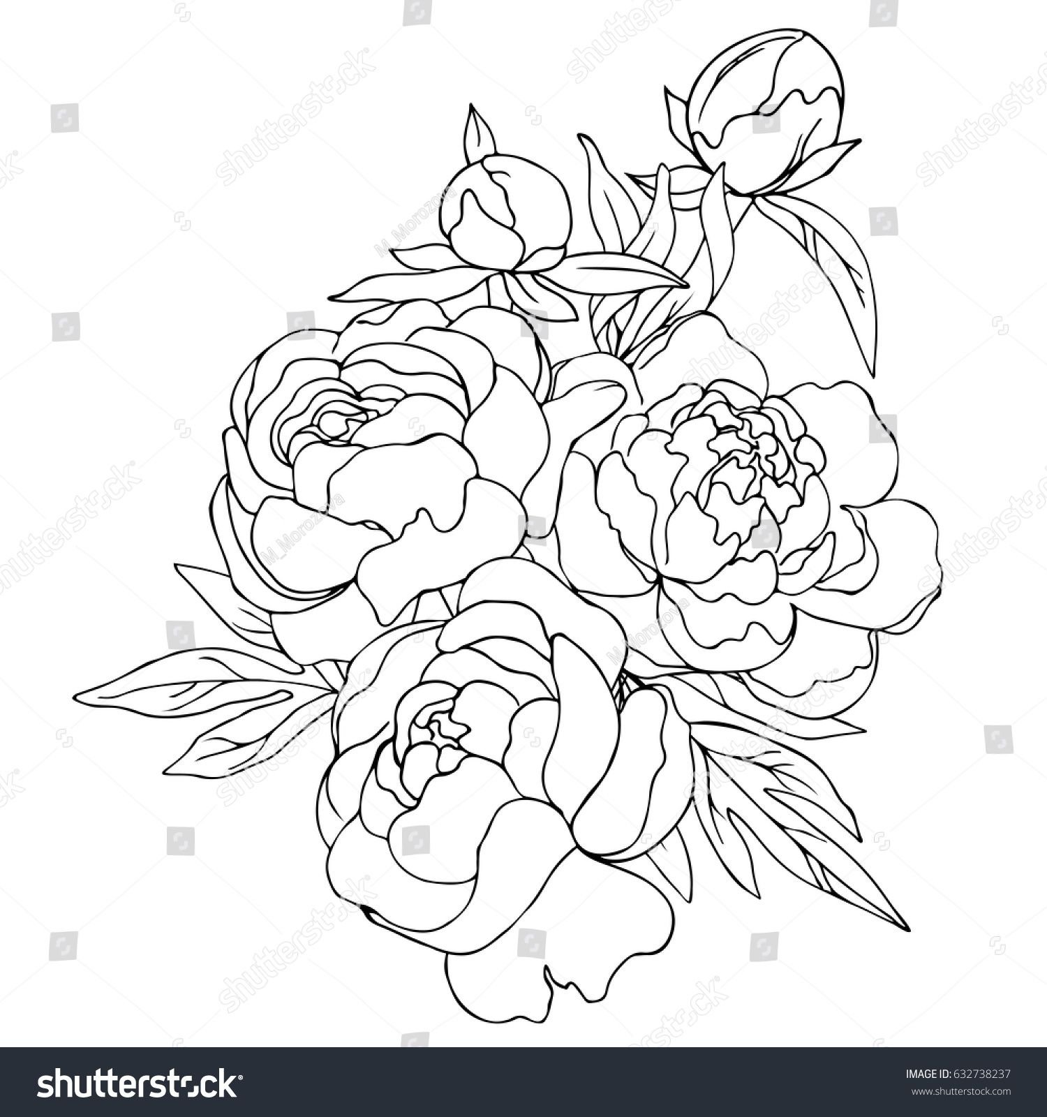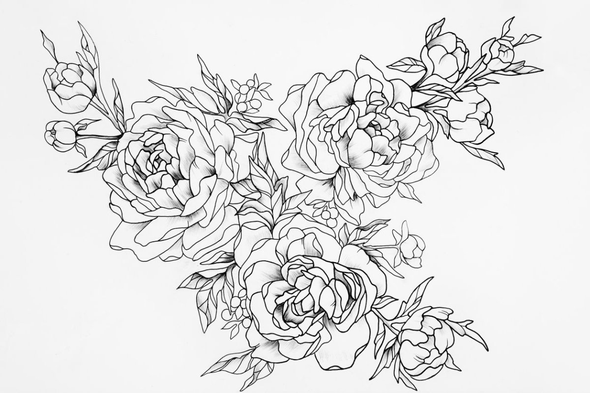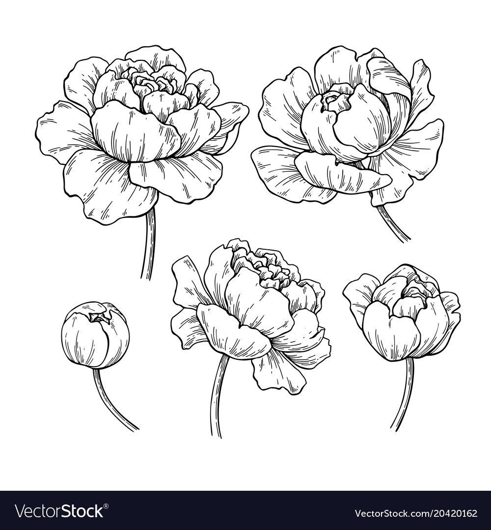 Пионы карандашом для срисовки