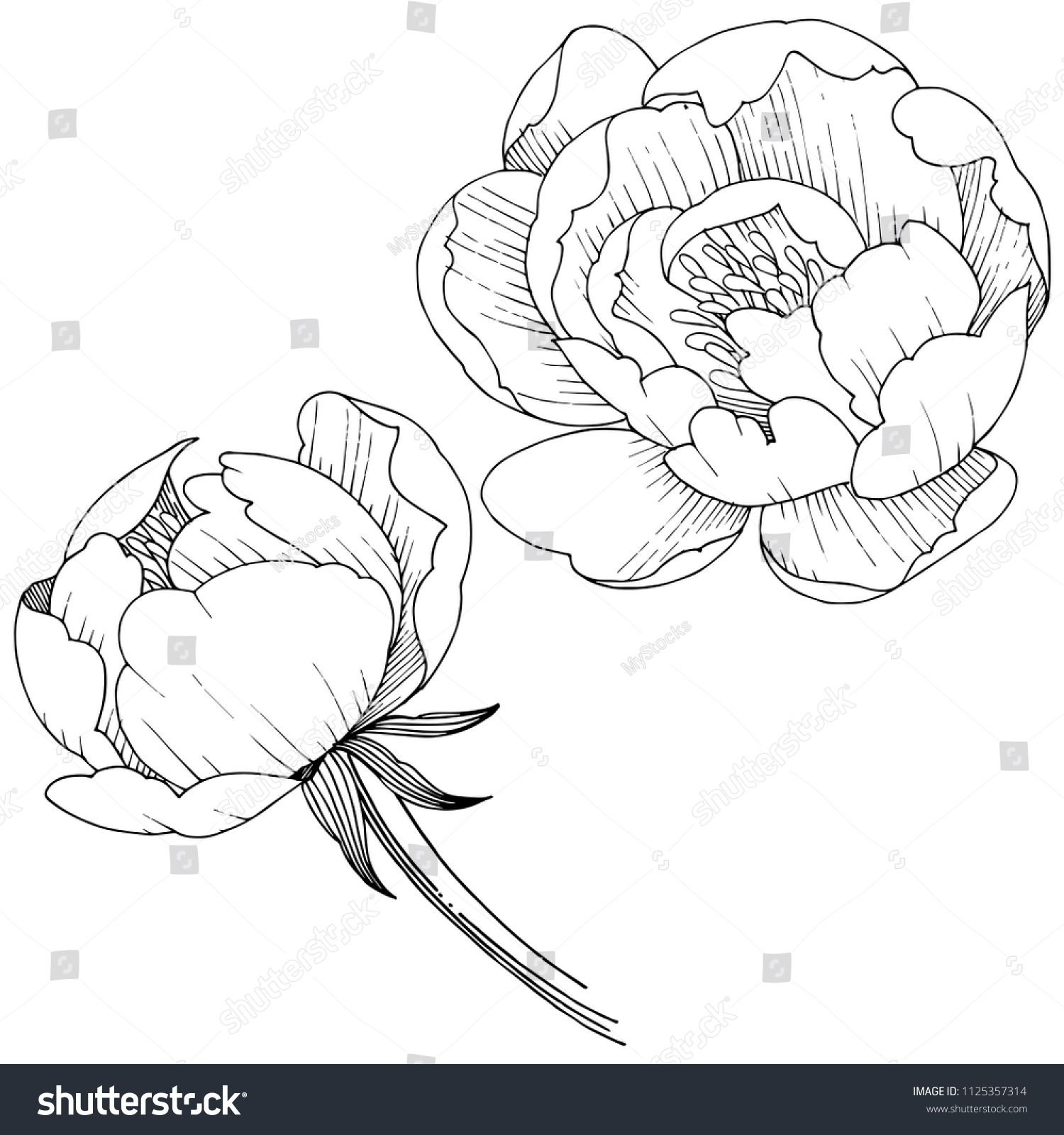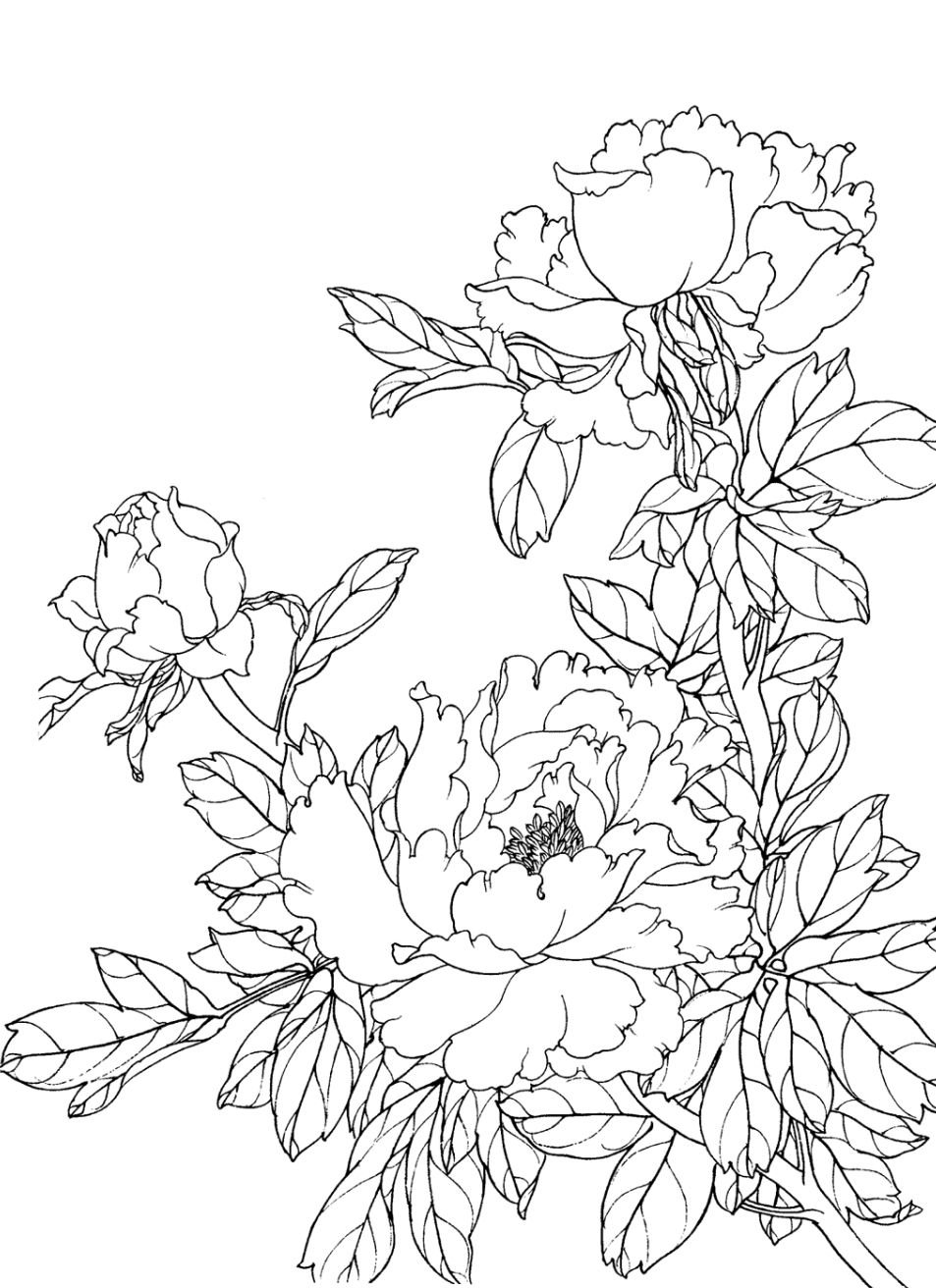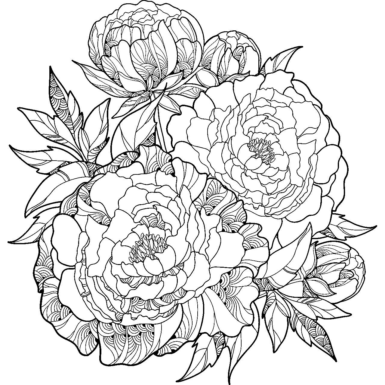 Пионы для раскрашивания черно-белые