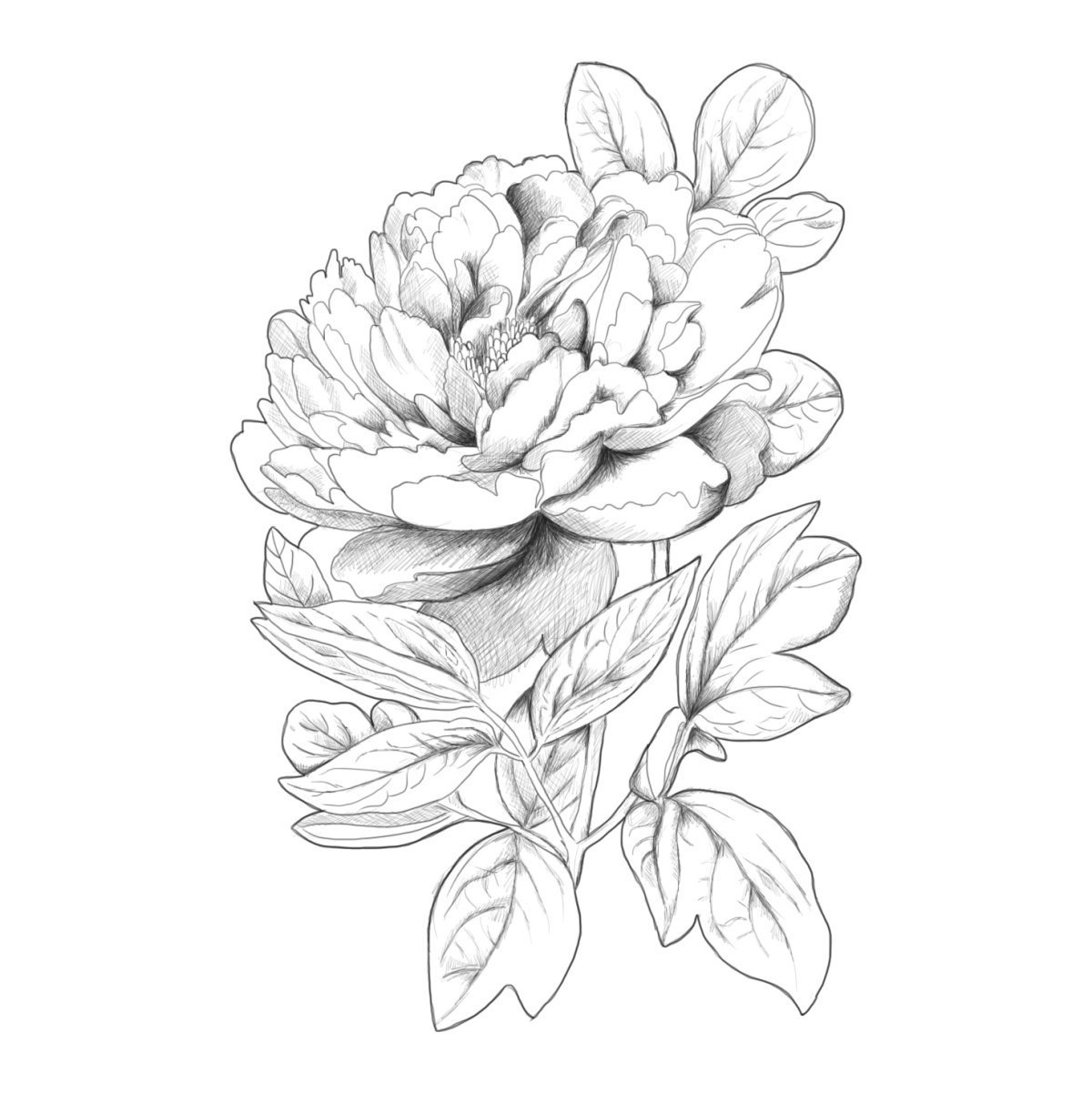 Раскрывшийся пион эскизы