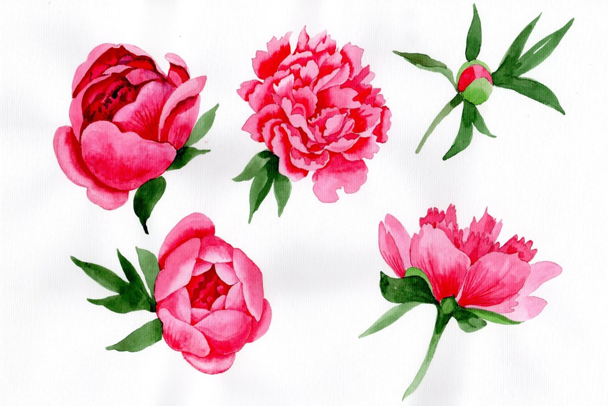 Цветы пионы акварель