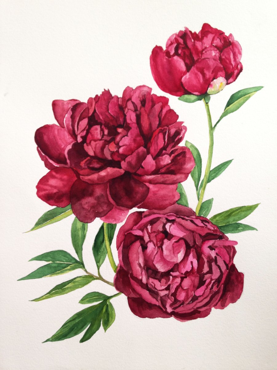 Пионы акварель
