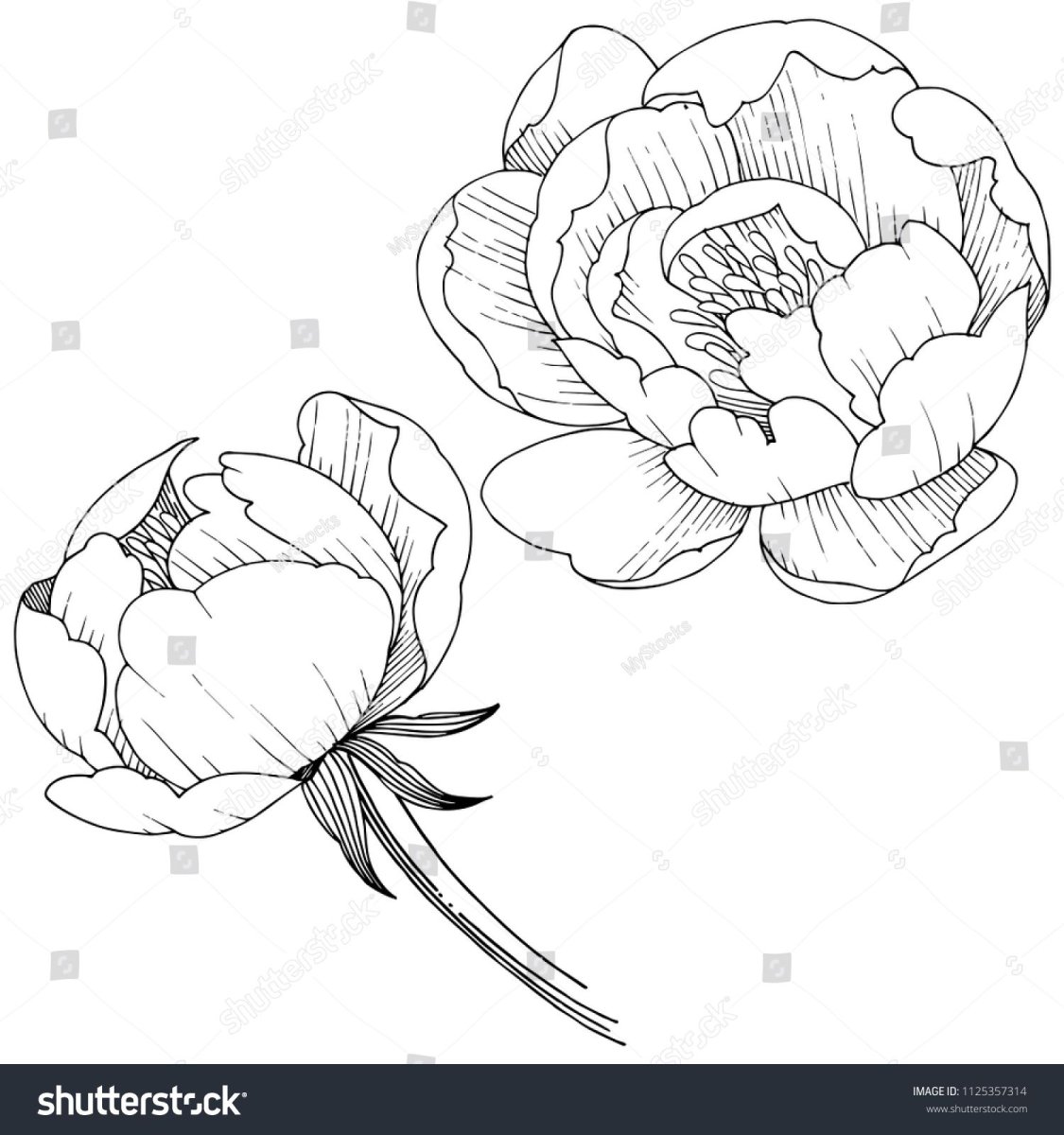 Бутон пион контур