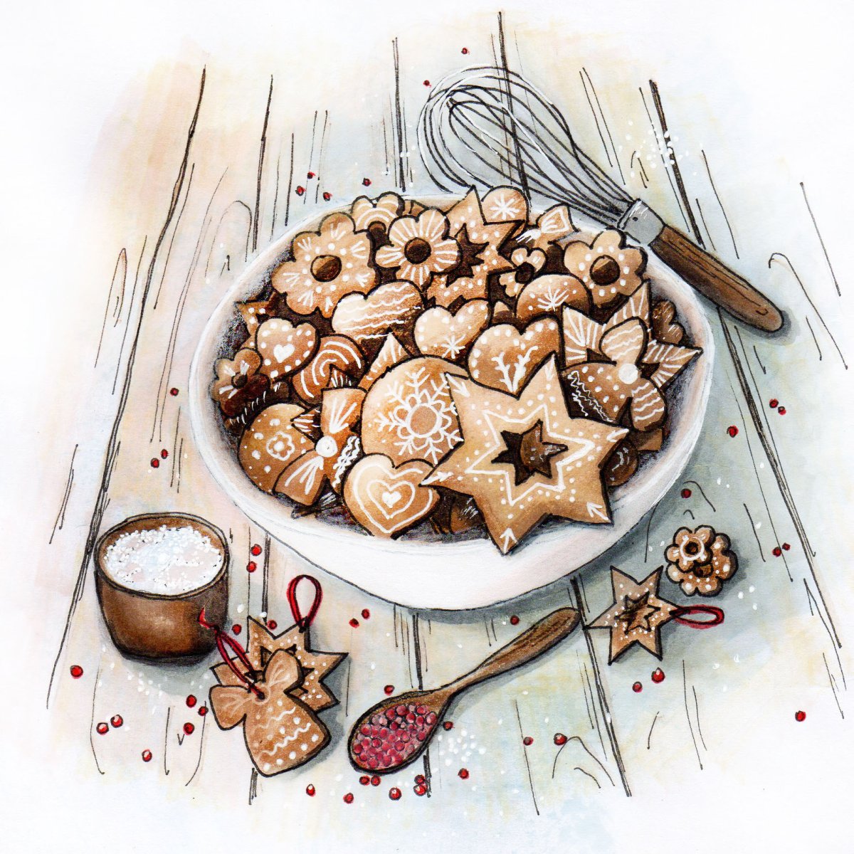 Пряник акварель