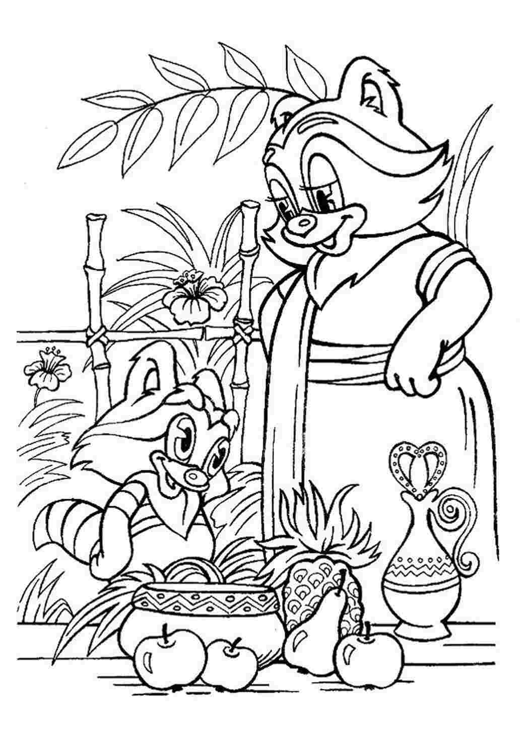 Крошка енот мультфильм раскраска