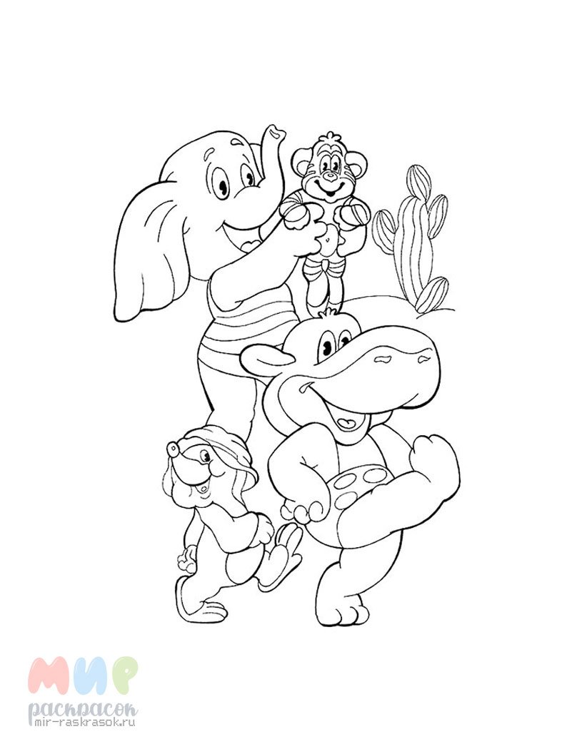 Крокодил Гена и Чебурашка раскраска раскраска