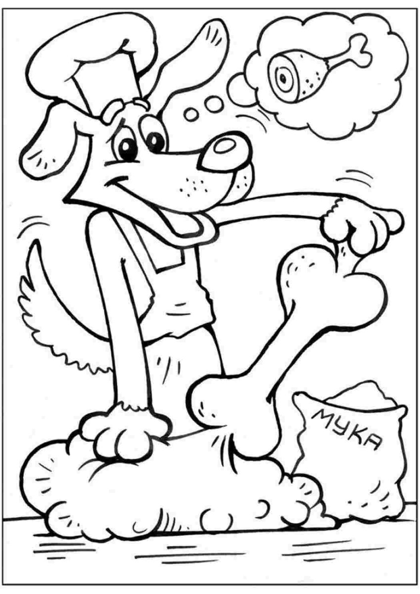 Раскраска пес шарик из Простоквашино